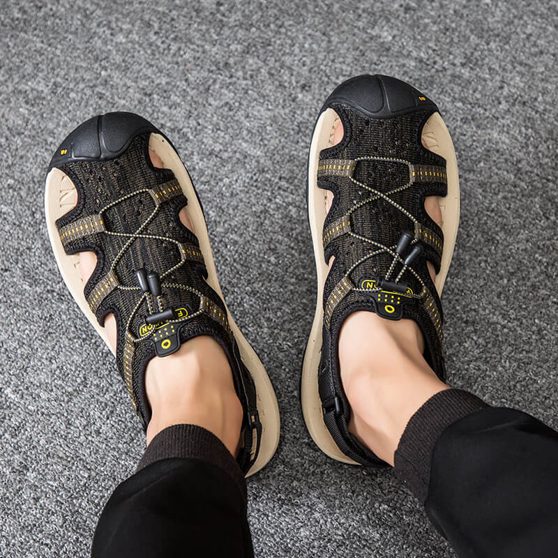 Sandals or slippers: Men closed toe sandals has anti-collision rubber toe cap to keep your feet safe and comfortable outdoor.