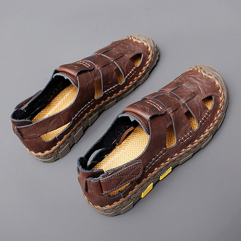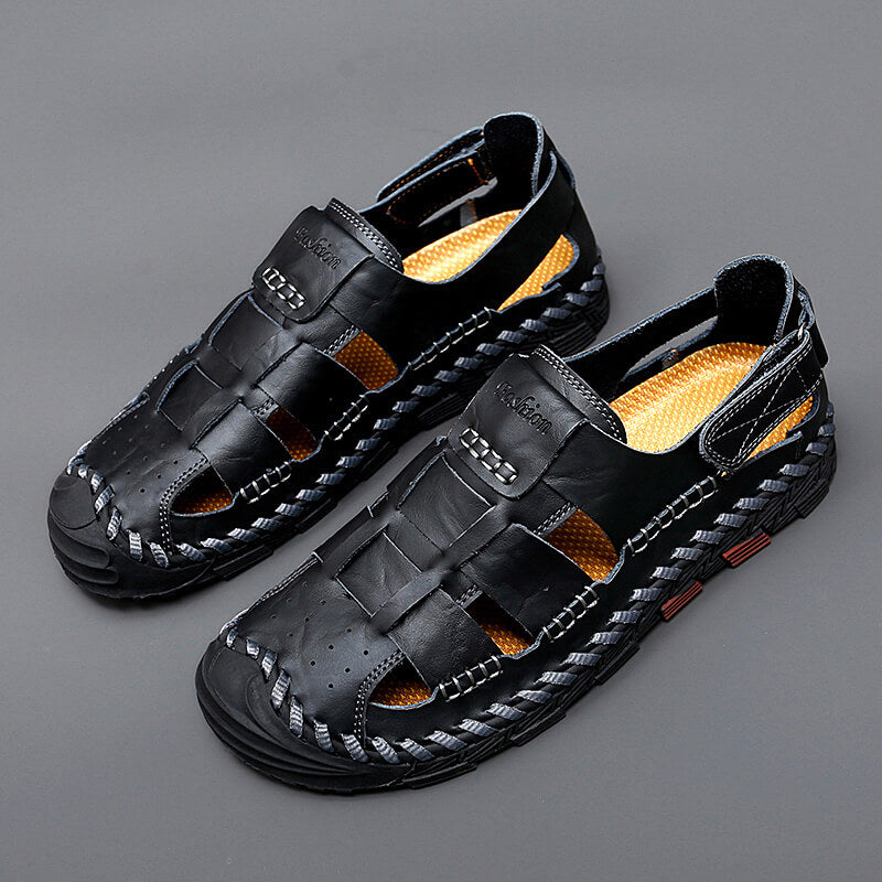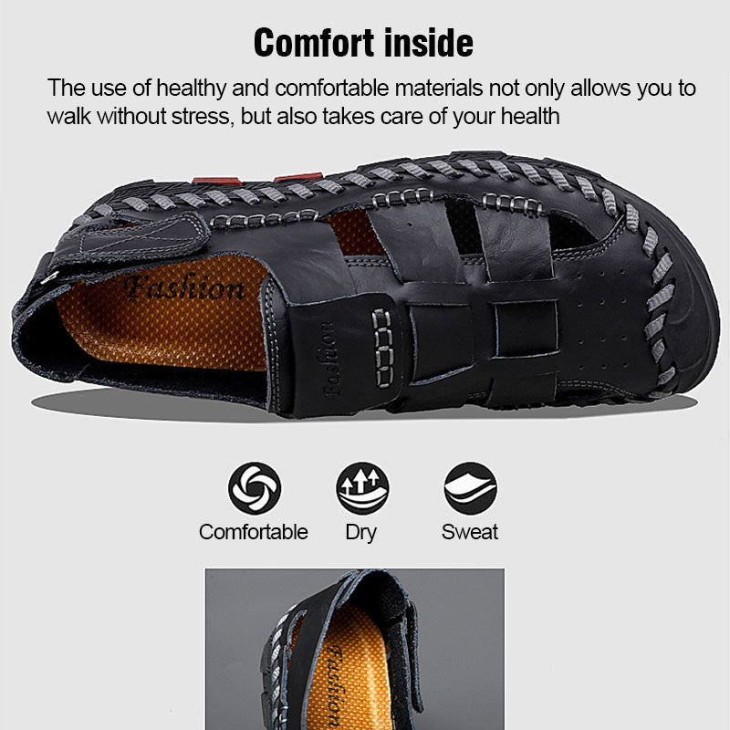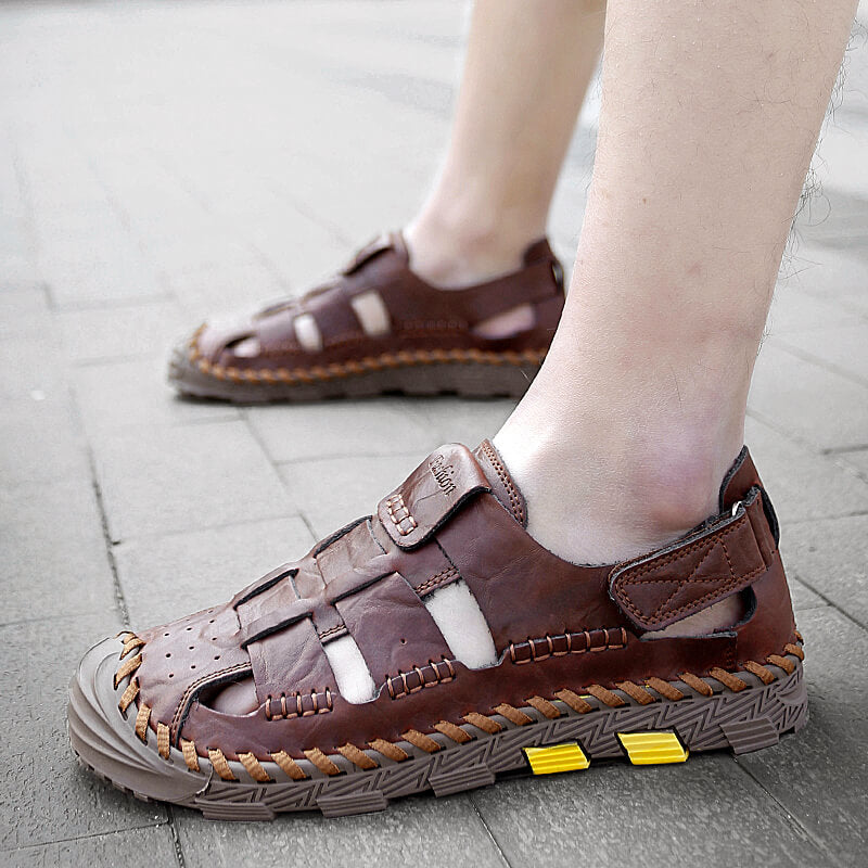 ??HIGH-QUALITY:The casual closed toe sandal's upper is made of premium leather with clear texture.And the leather sandals used Hand stitching so that the fisherman shoes can be durable and firm.