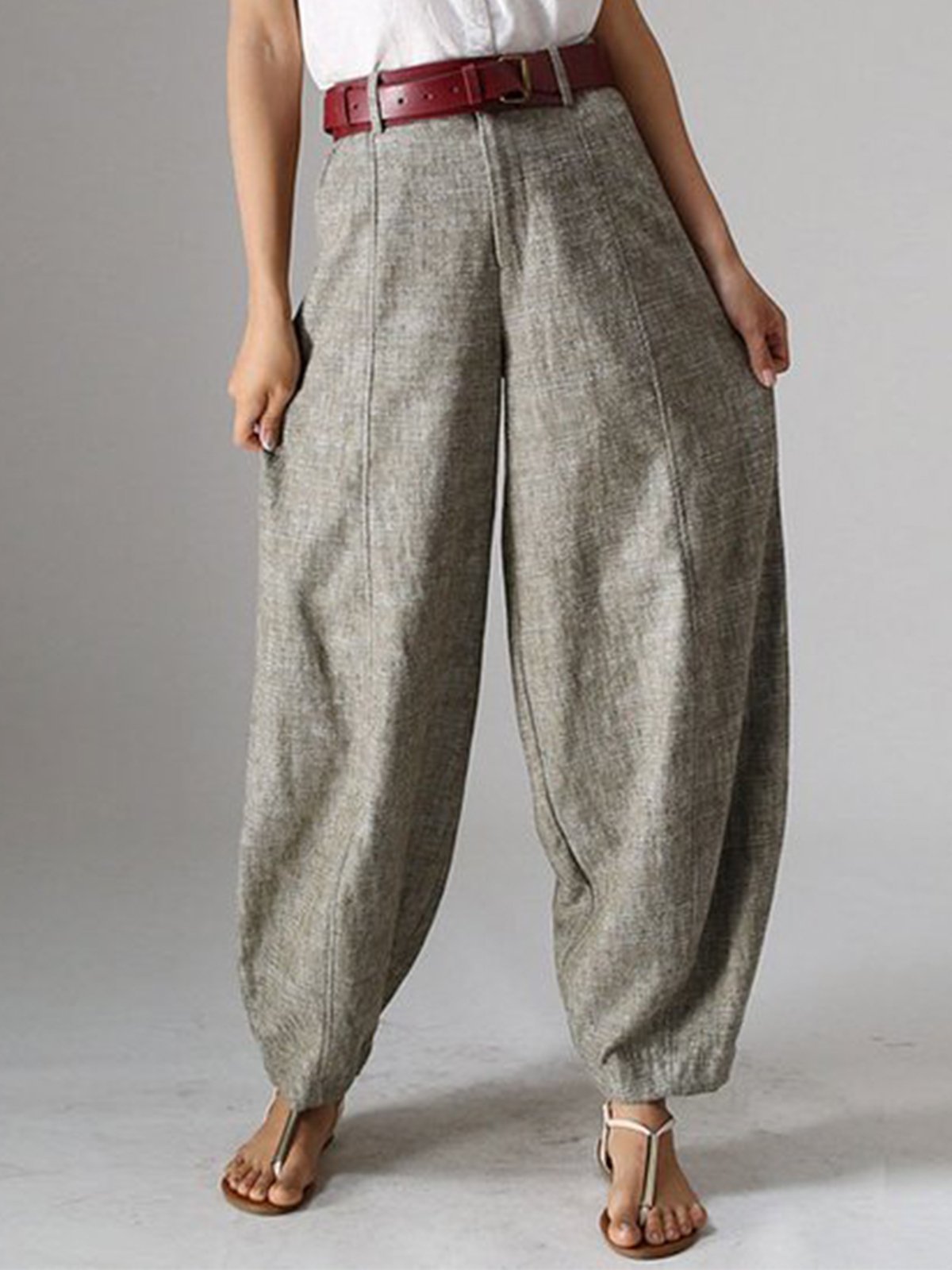 Natural Casual Plain Linen Pants