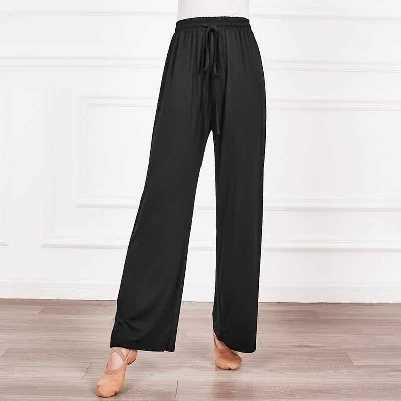 Pure Color High Waist Lace Up Flowy Wide Leg Casual Pants