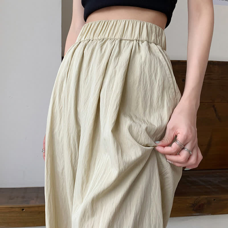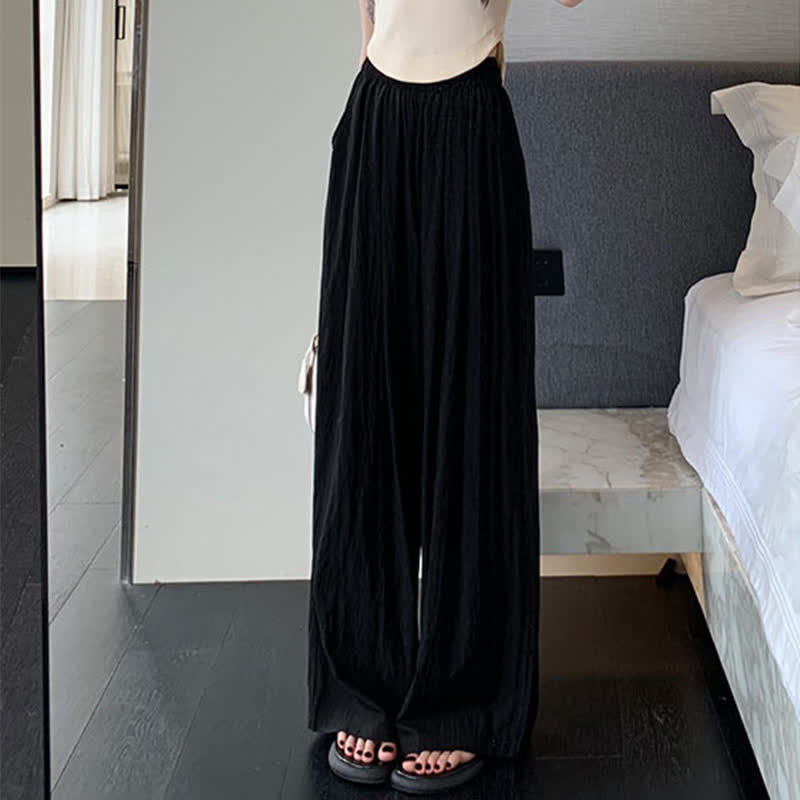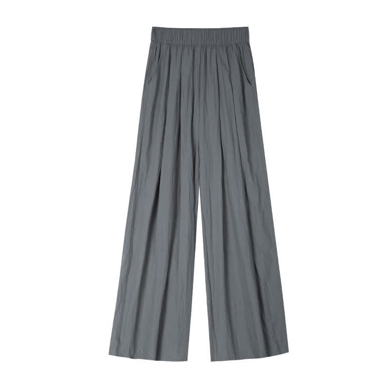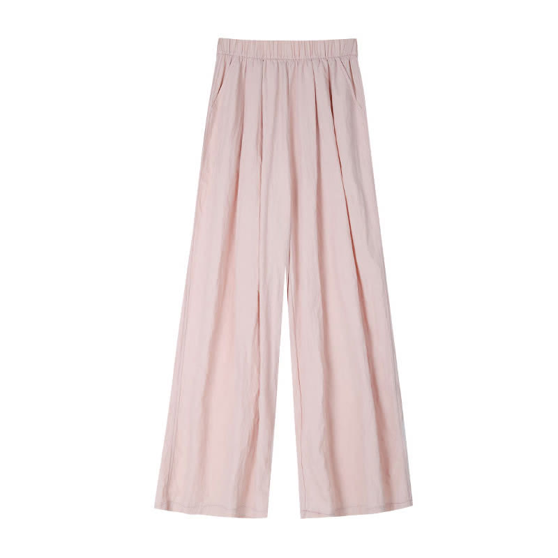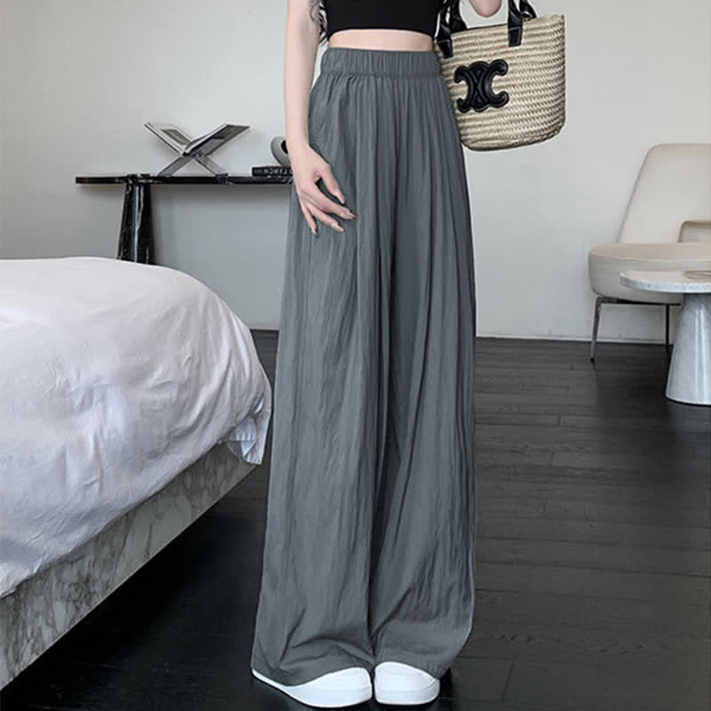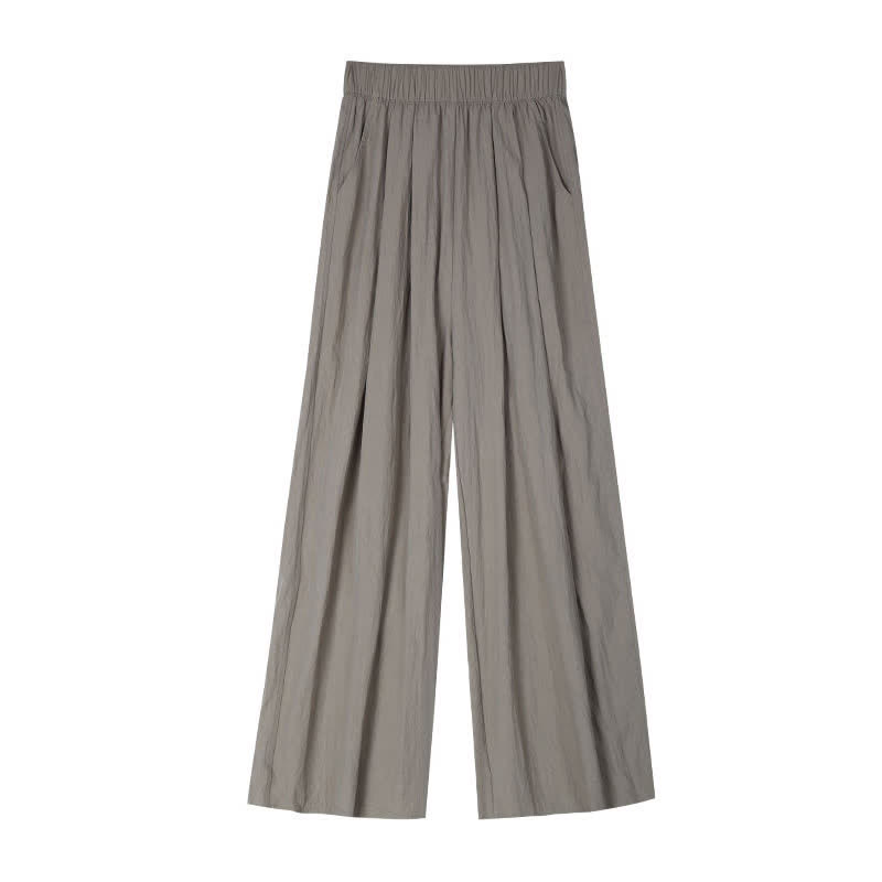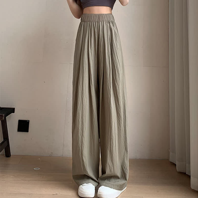 Pure Color High Waist Pleated Wide Leg Casual Pants