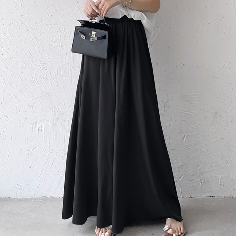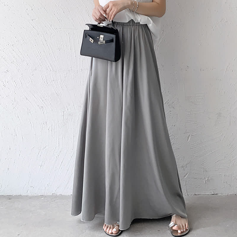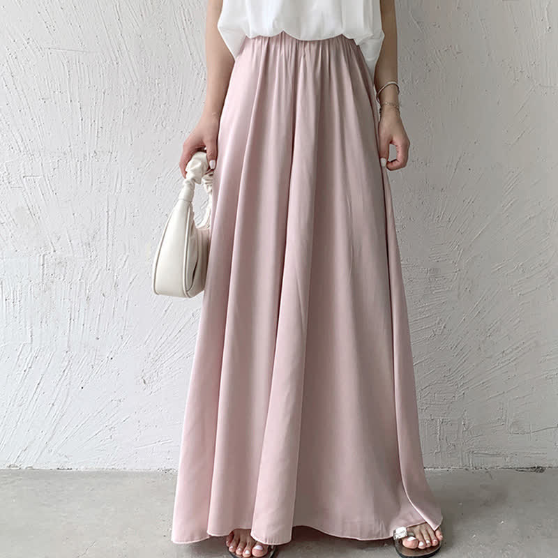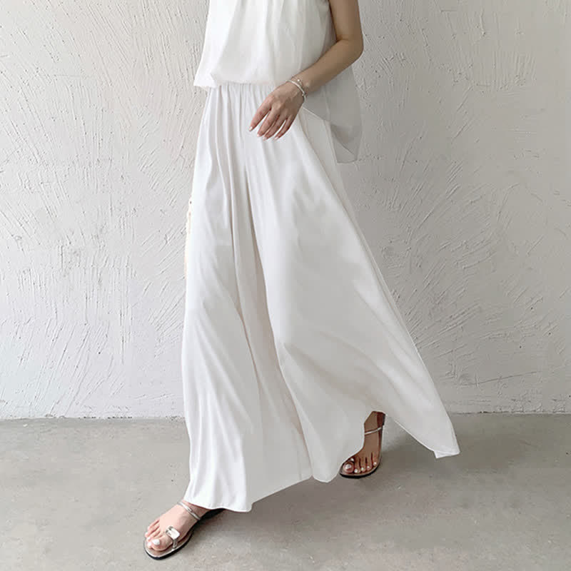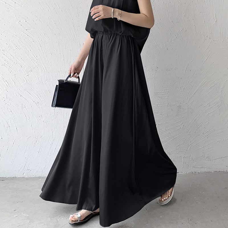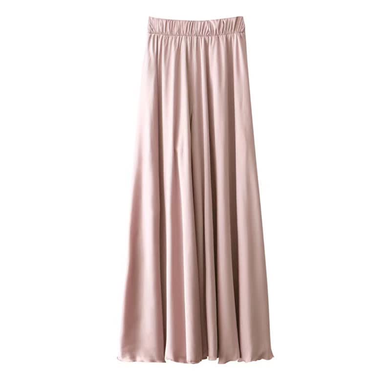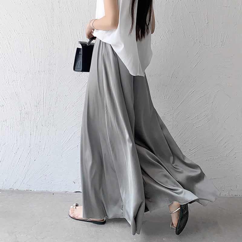 Pure Color High Waist Wide Leg Satin Palazzo Pants