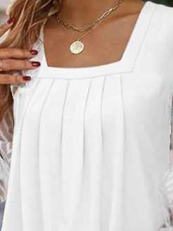 Square Neck Casual Split Joint Lace Shirt