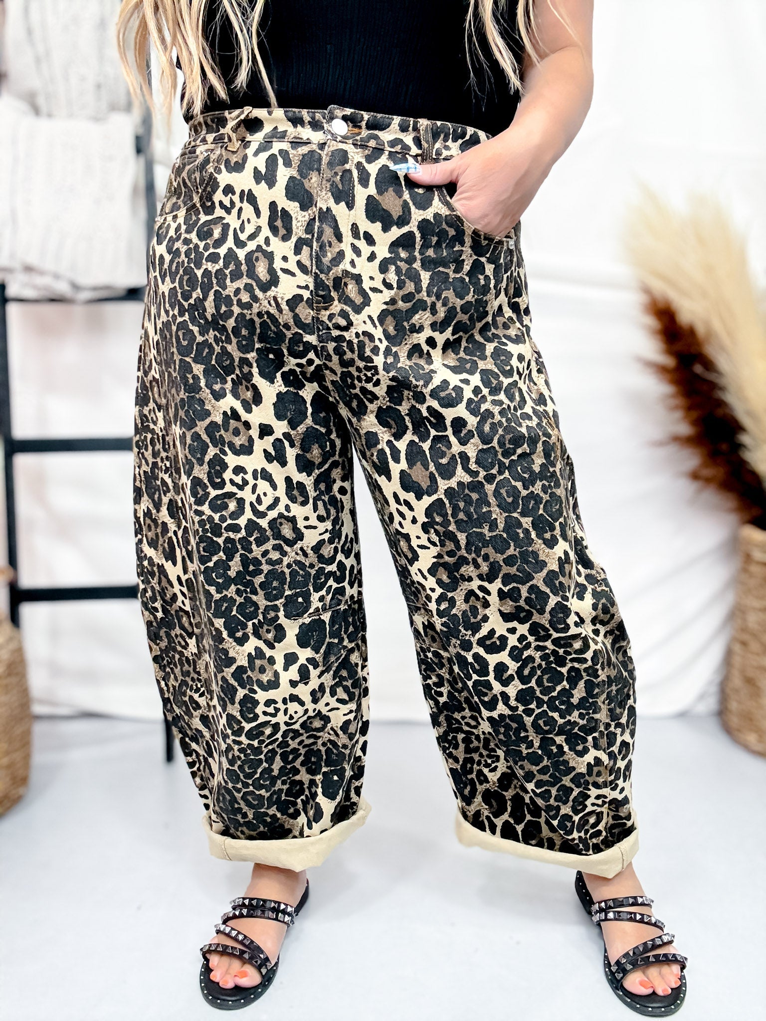 Get ready to make a statement with these bold washed leopard printed jeans. Designed for those who want to embrace their inner wild side, these jeans are a must-have addition to any wardrobe. Dress them up or down for any occasion and stand out from the crowd with these fierce and daring jeans. Don't wait too long, get your hands on these one-of-a-kind pieces before they're gone!