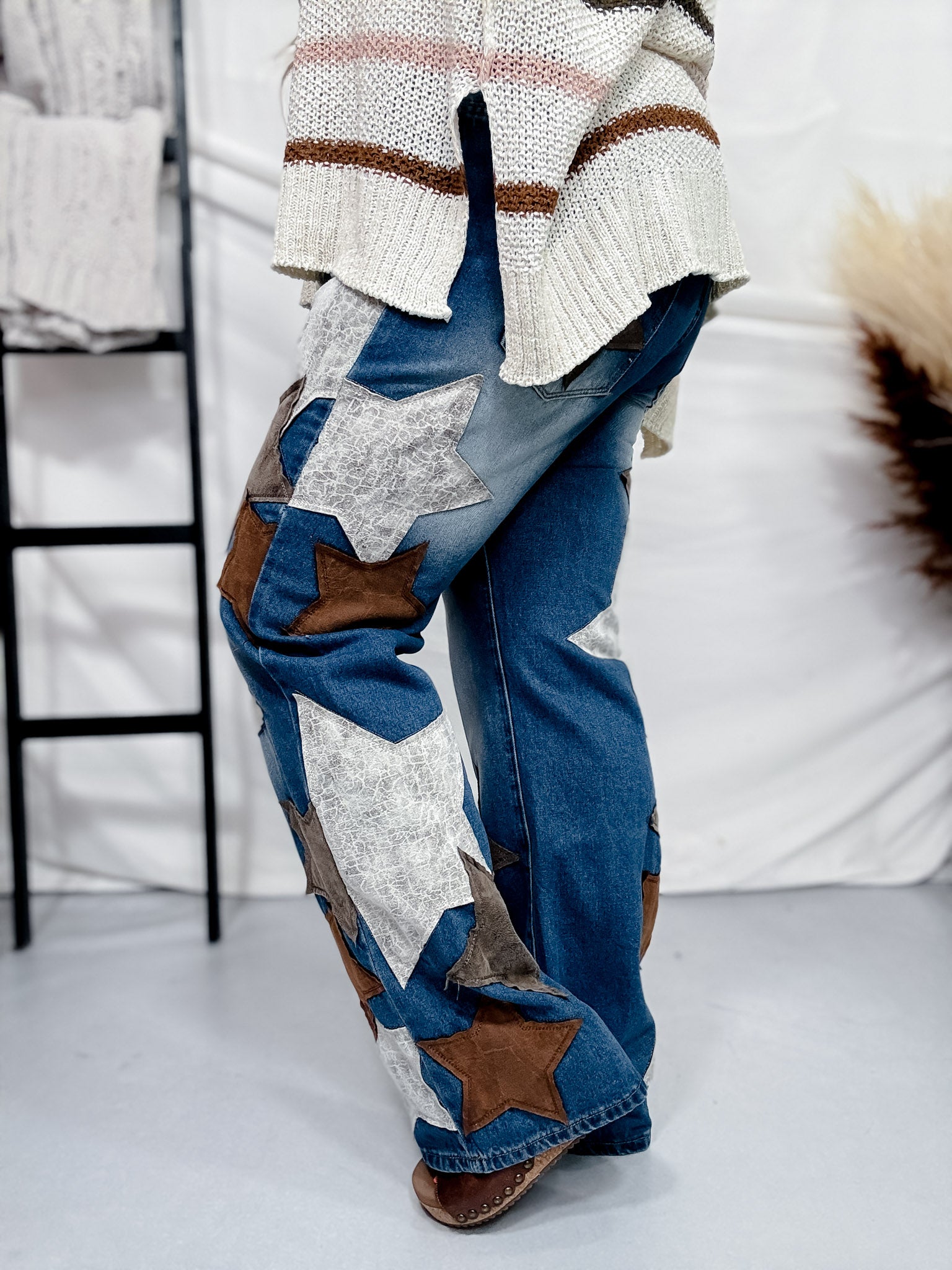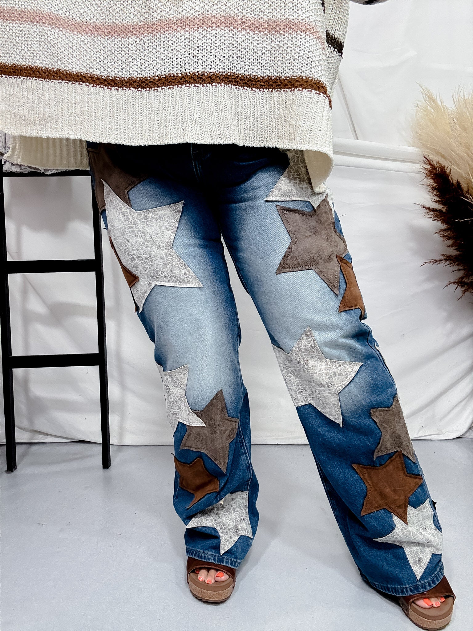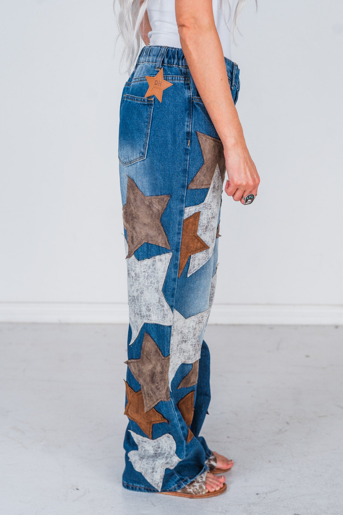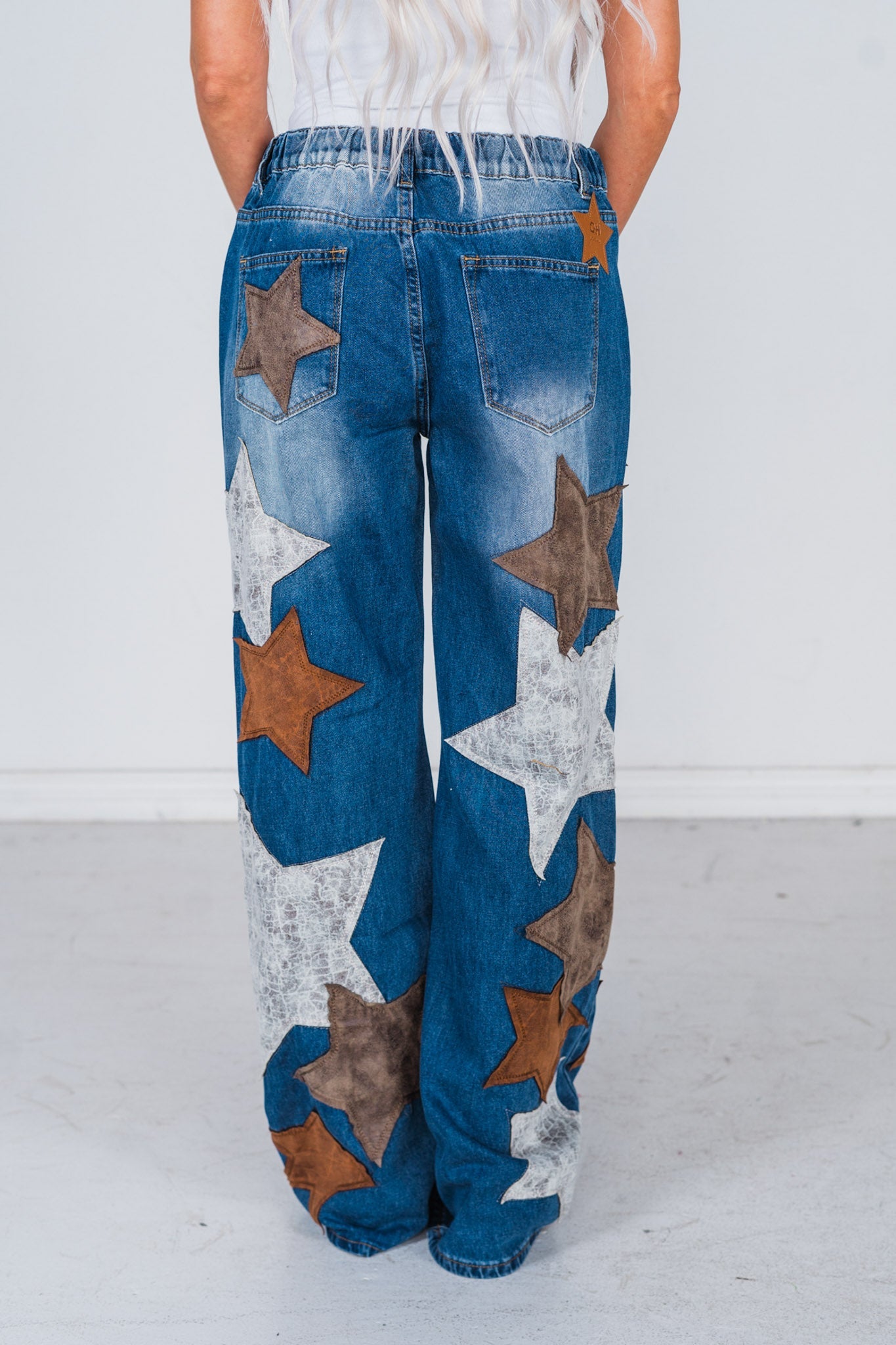 Dress up your denim game with these stylish star patched jeans. Made with high-quality washed Pu, they're not only adorable but also durable and perfect for everyday wear.