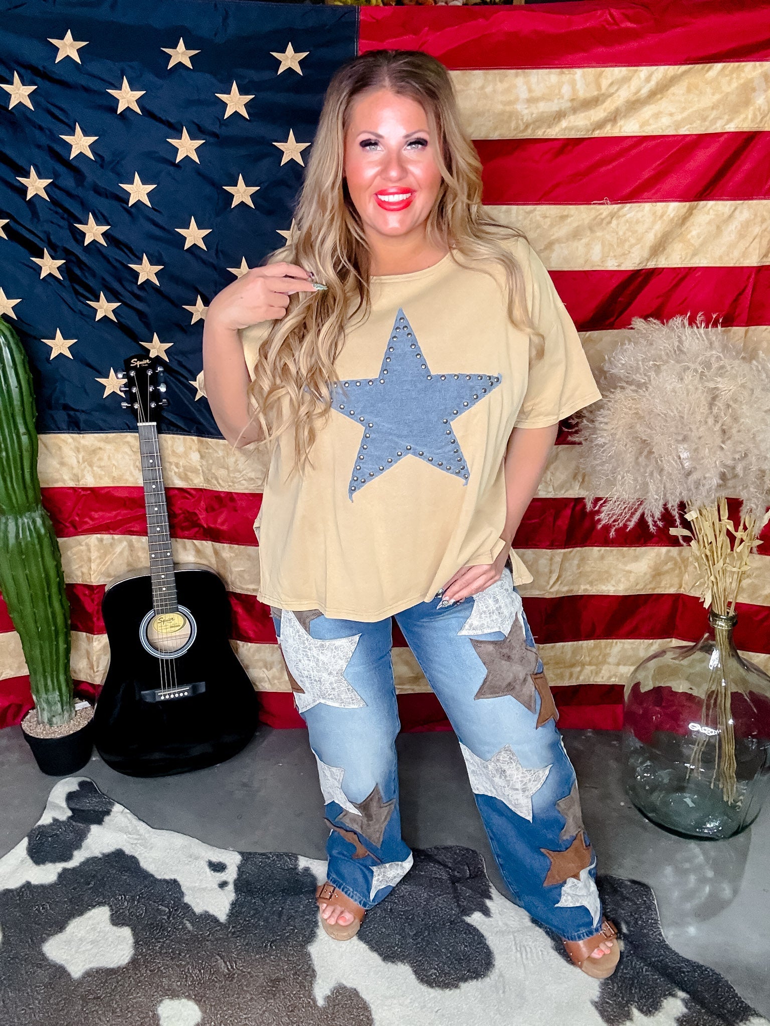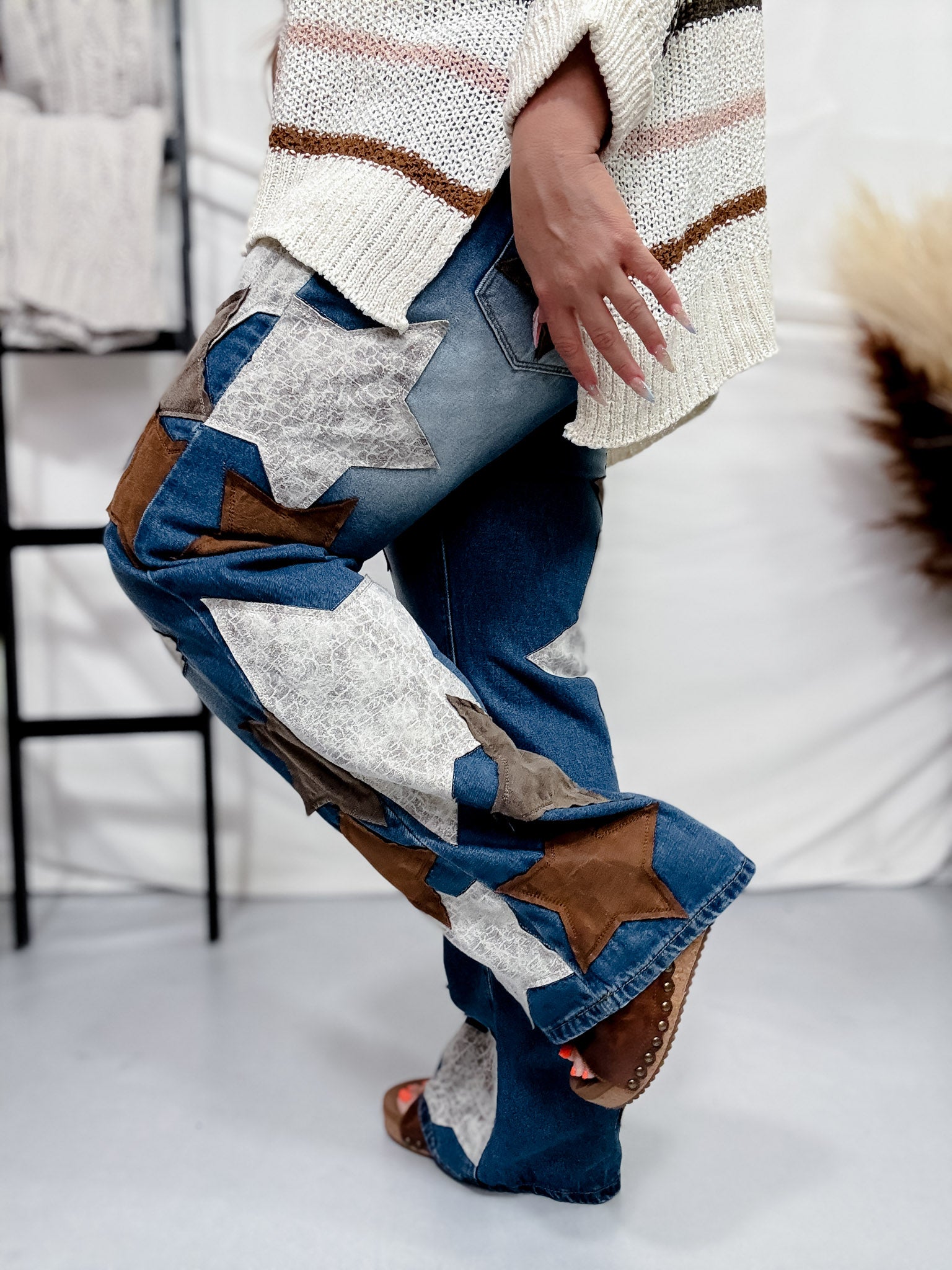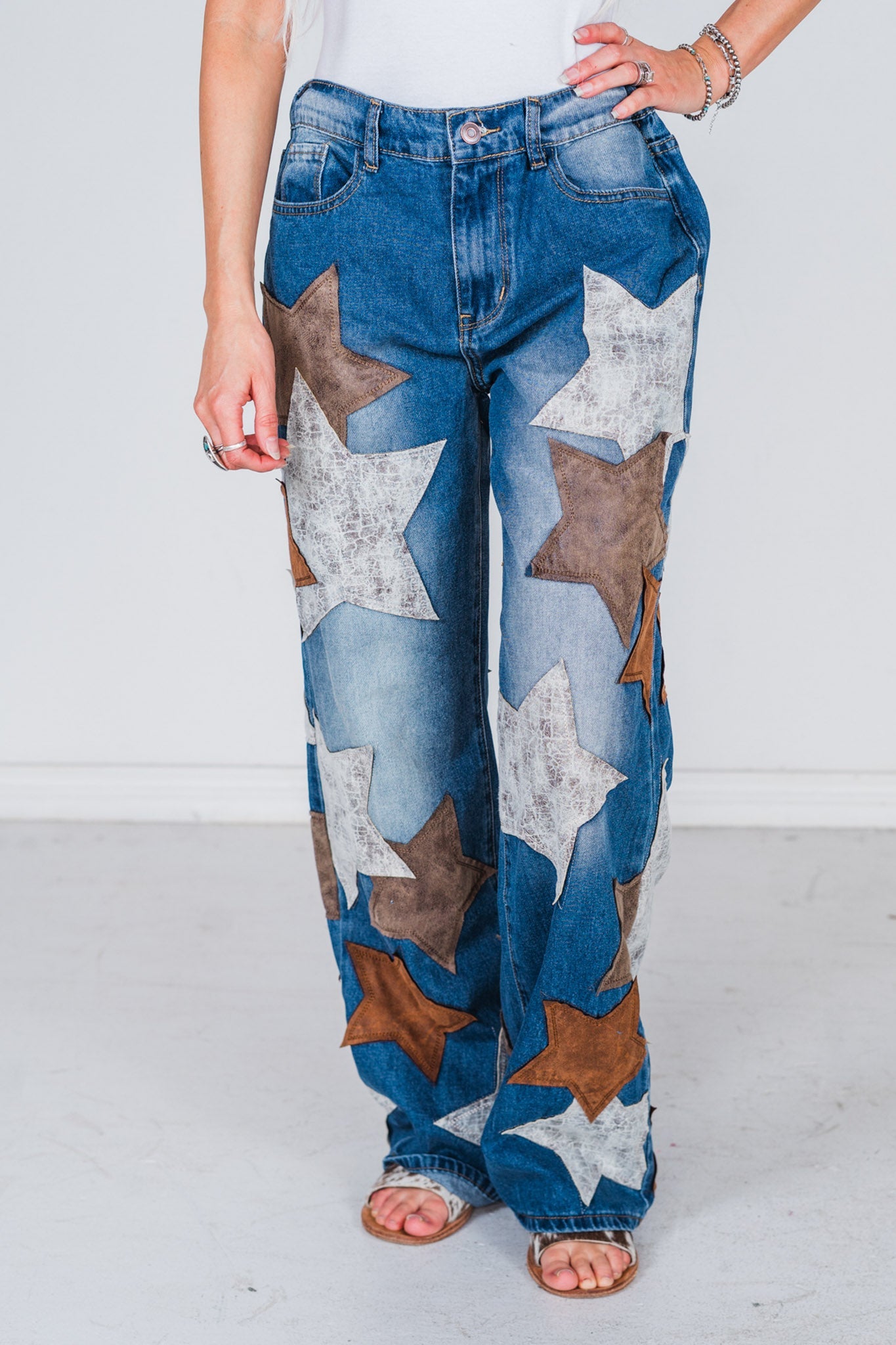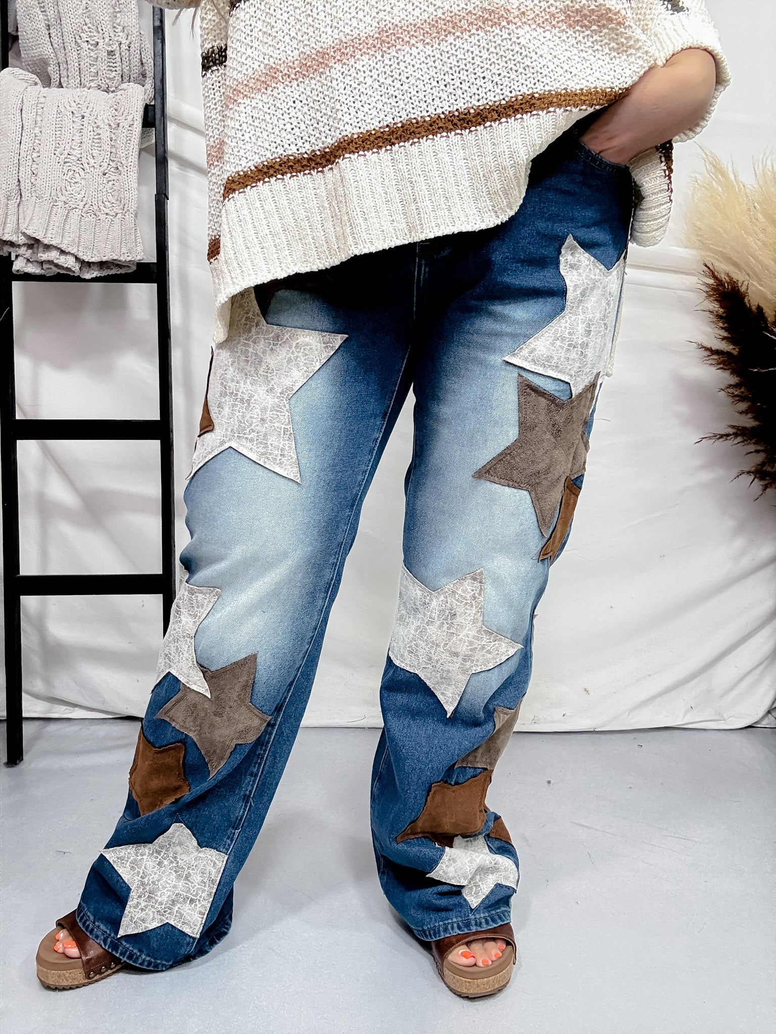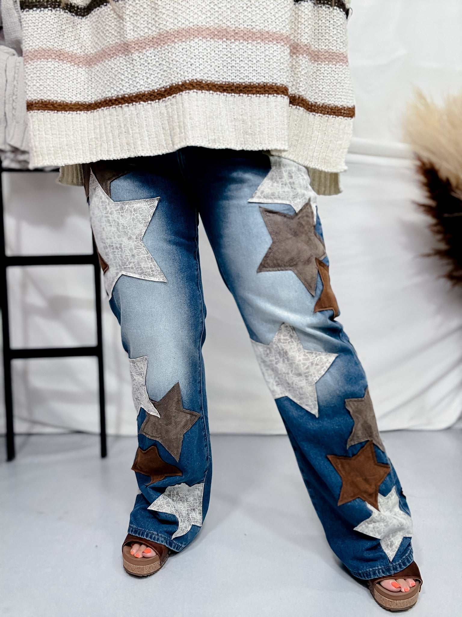 Dress up your denim game with these stylish star patched jeans. Made with high-quality washed Pu, they're not only adorable but also durable and perfect for everyday wear.