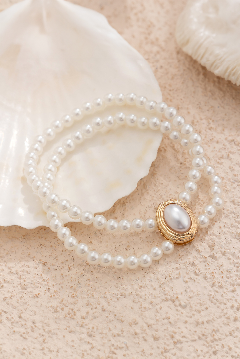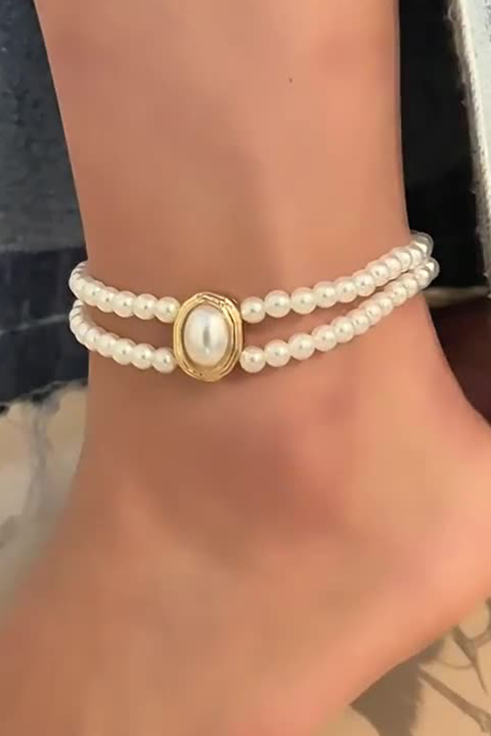 White Pearl/Turquoise Beaded Double Layered Anklet