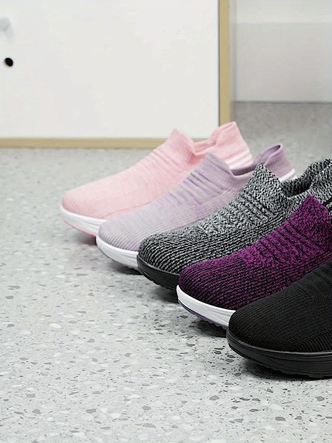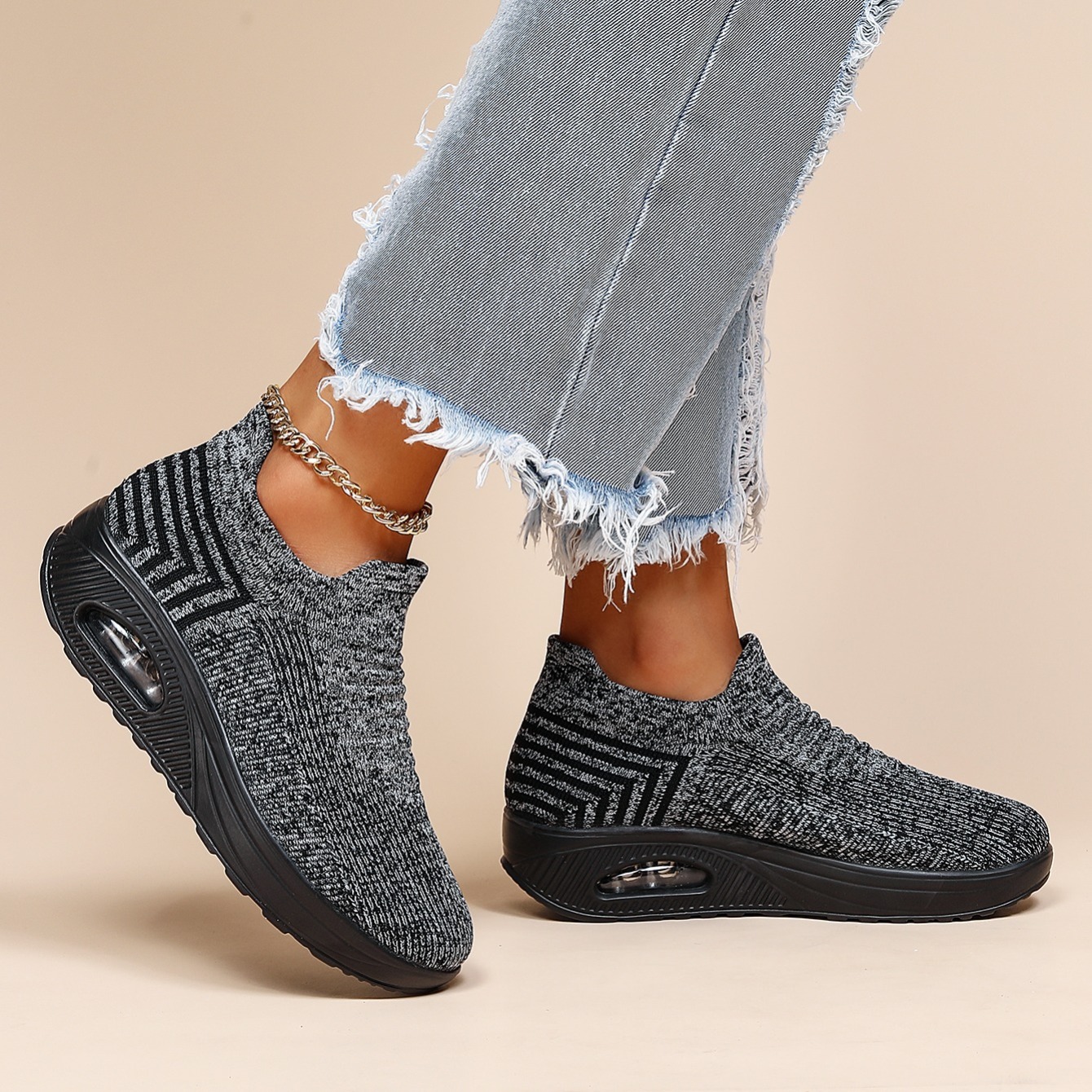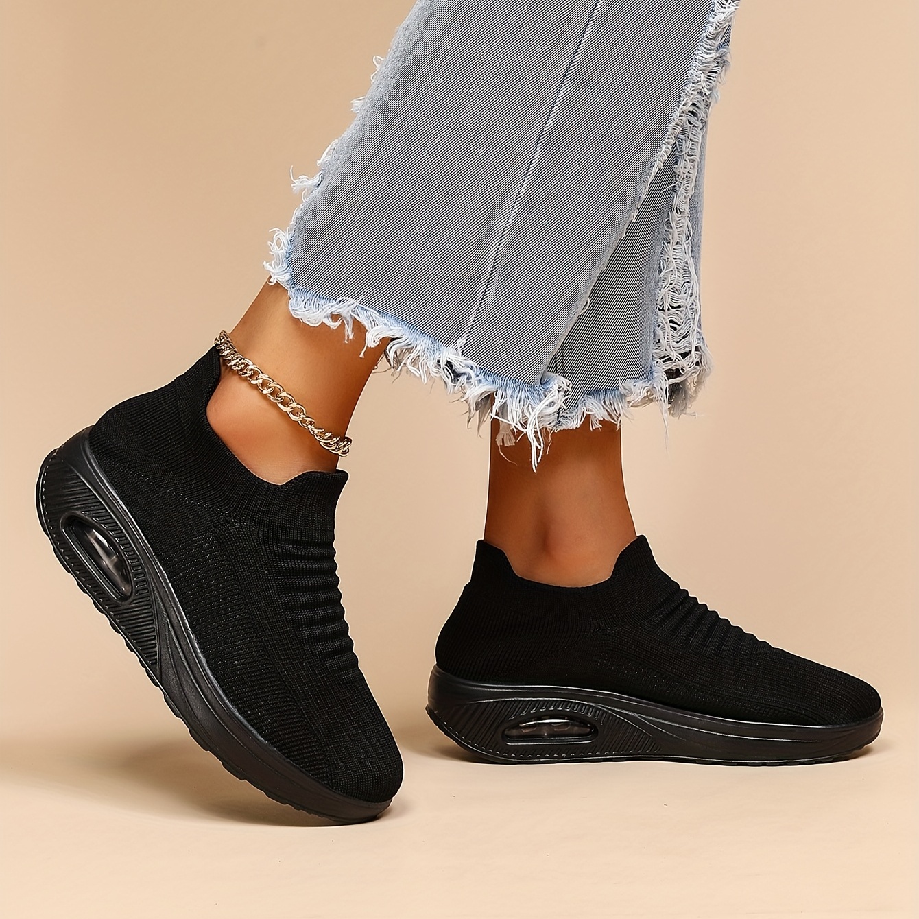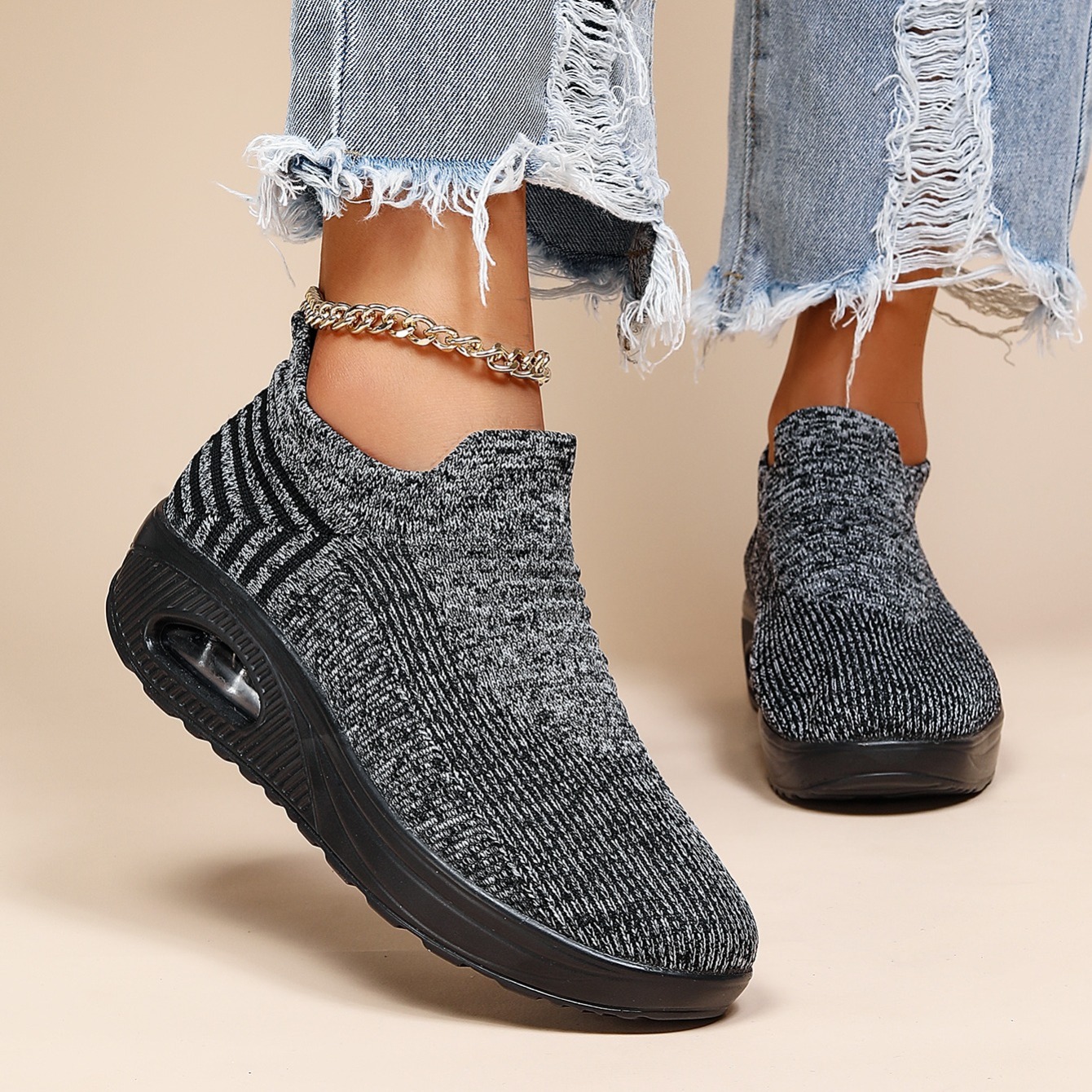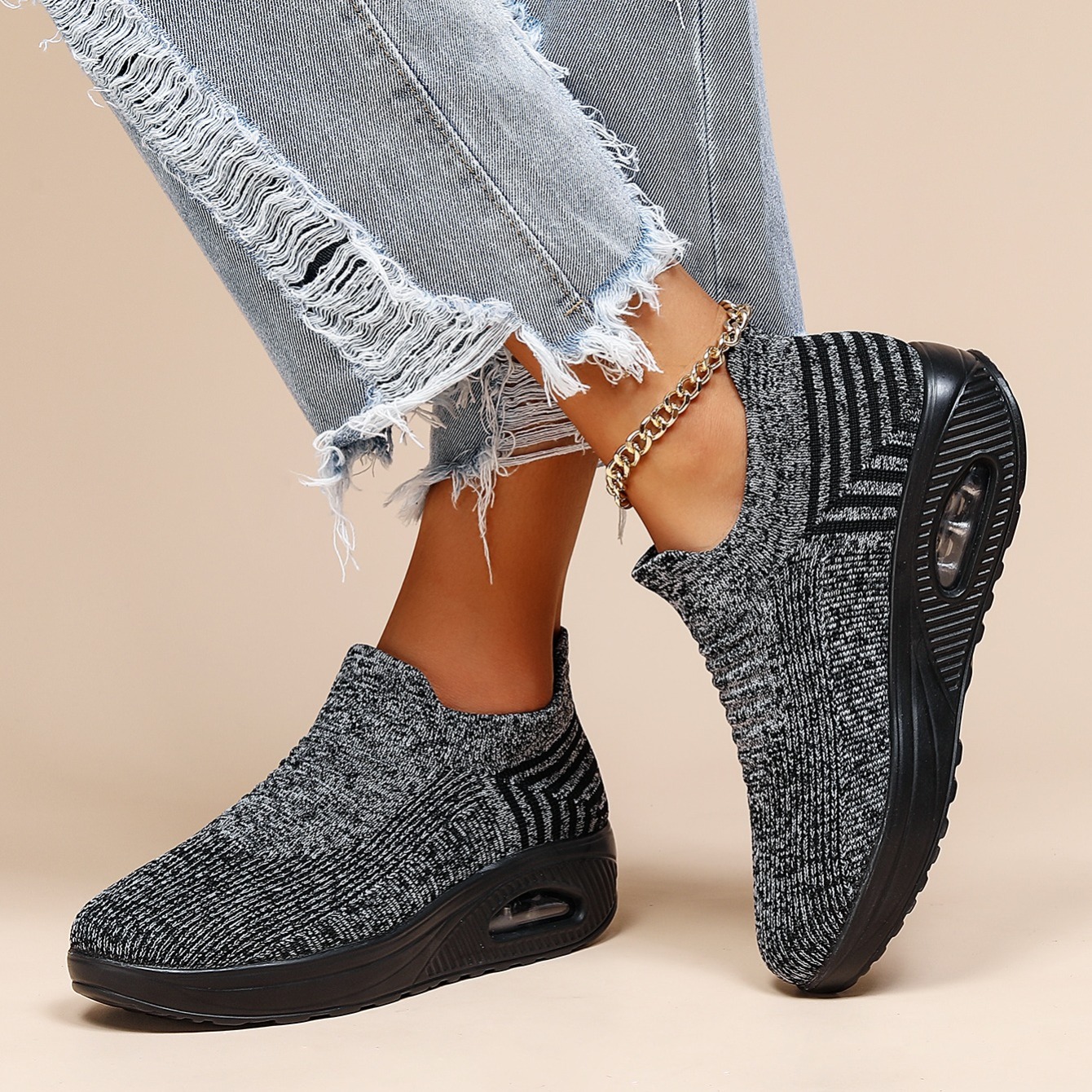 Women's Air Cushion Sneakers, Breathable Round Closed Toe Low Top Slip On Shoes, Women's Casual Knitted Shoes