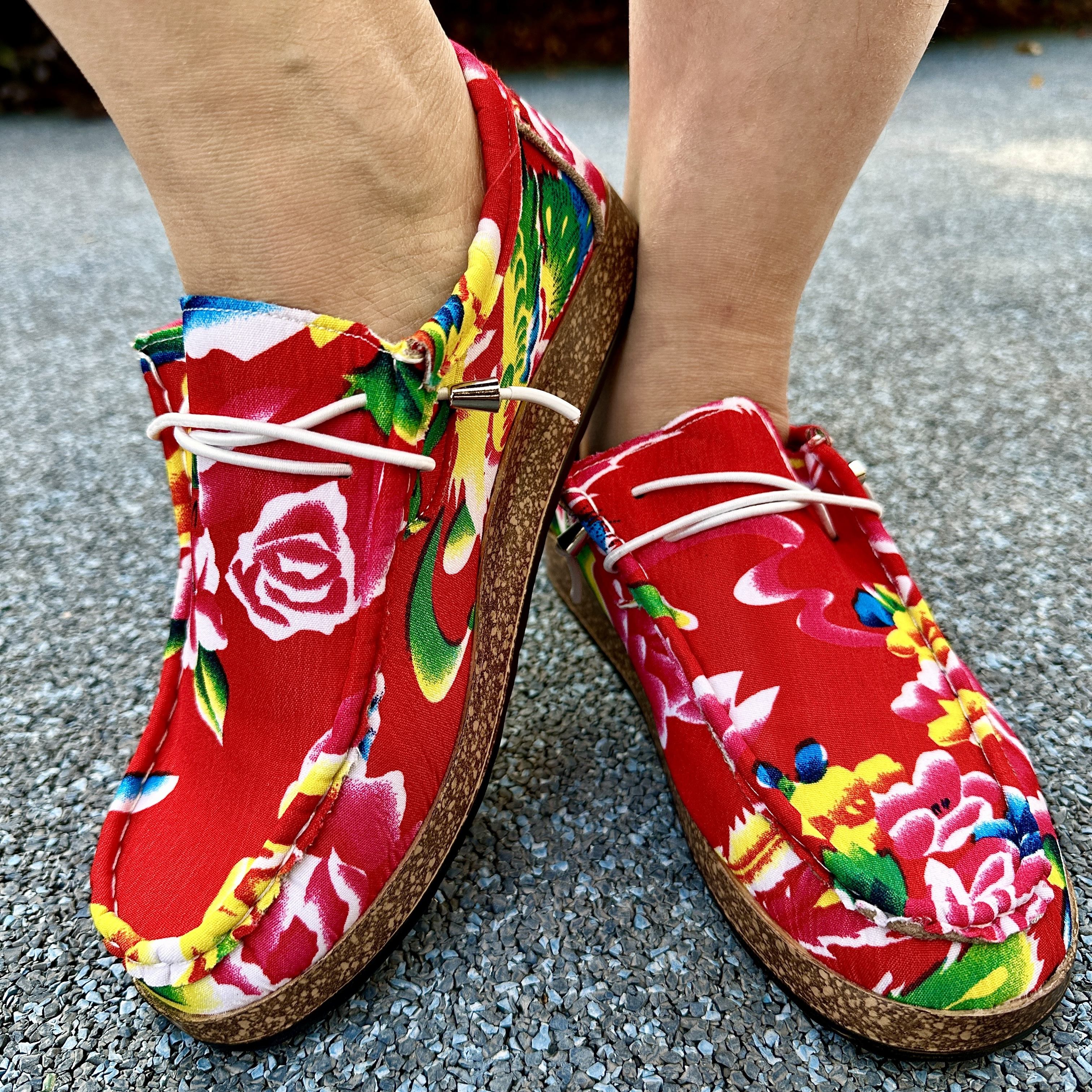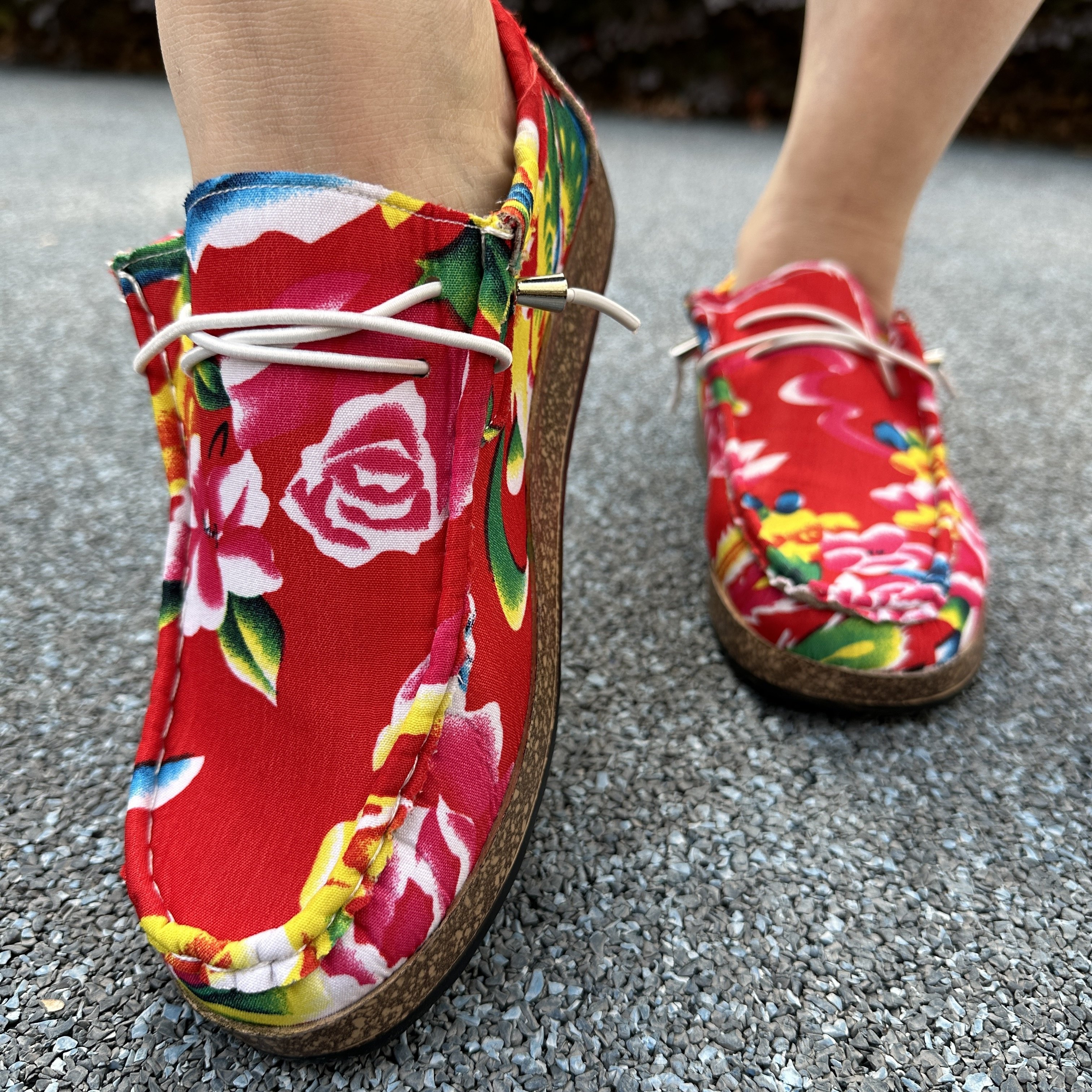 Women's Floral Pattern Loafers, Soft Sole Lightweight Slip On Walking Shoes, Low-top Versatile Canvas Shoes
