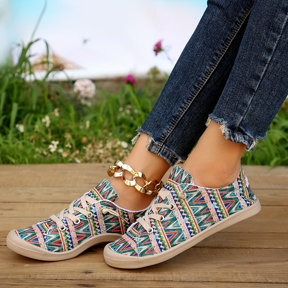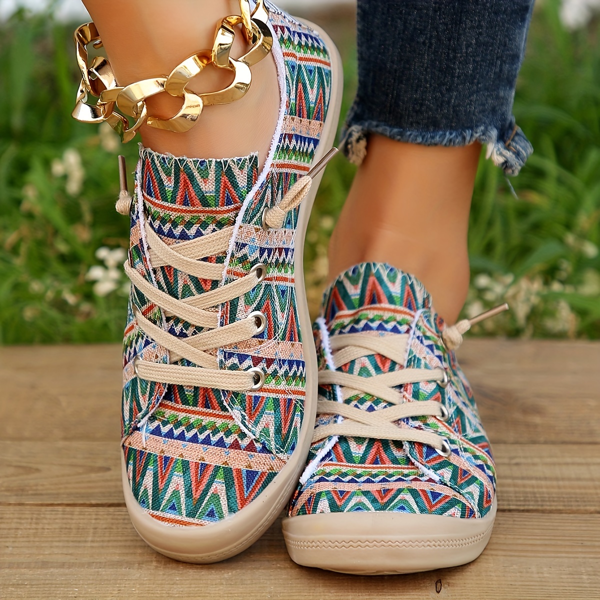 Women's Geometric Pattern Sneakers, Casual Lace Up Low Top Shoes, Lightweight Outdoor Walking Shoes