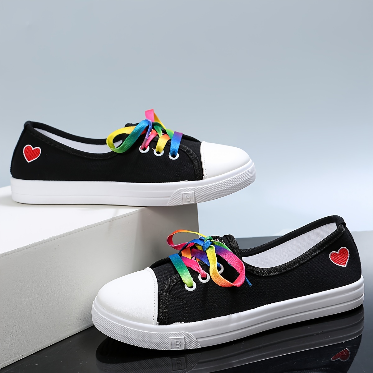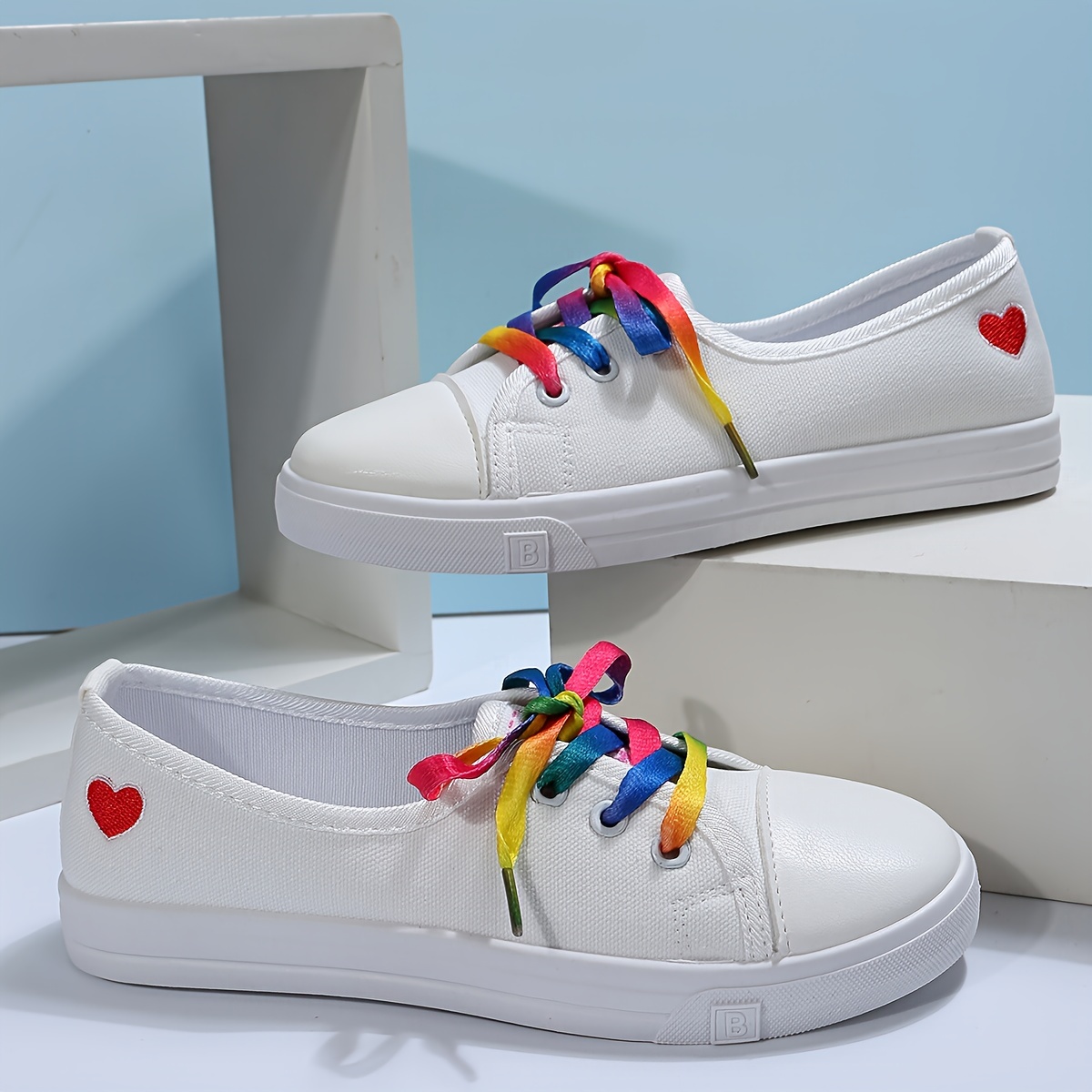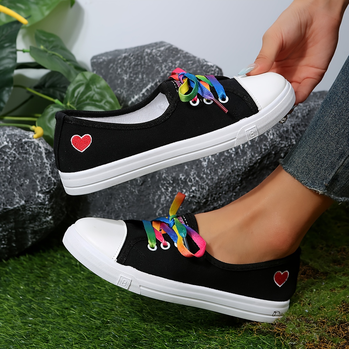 Women's Heart Pattern Canvas Shoes, Casual Lace Up Outdoor Shoes, Lightweight Los Top Sneakers