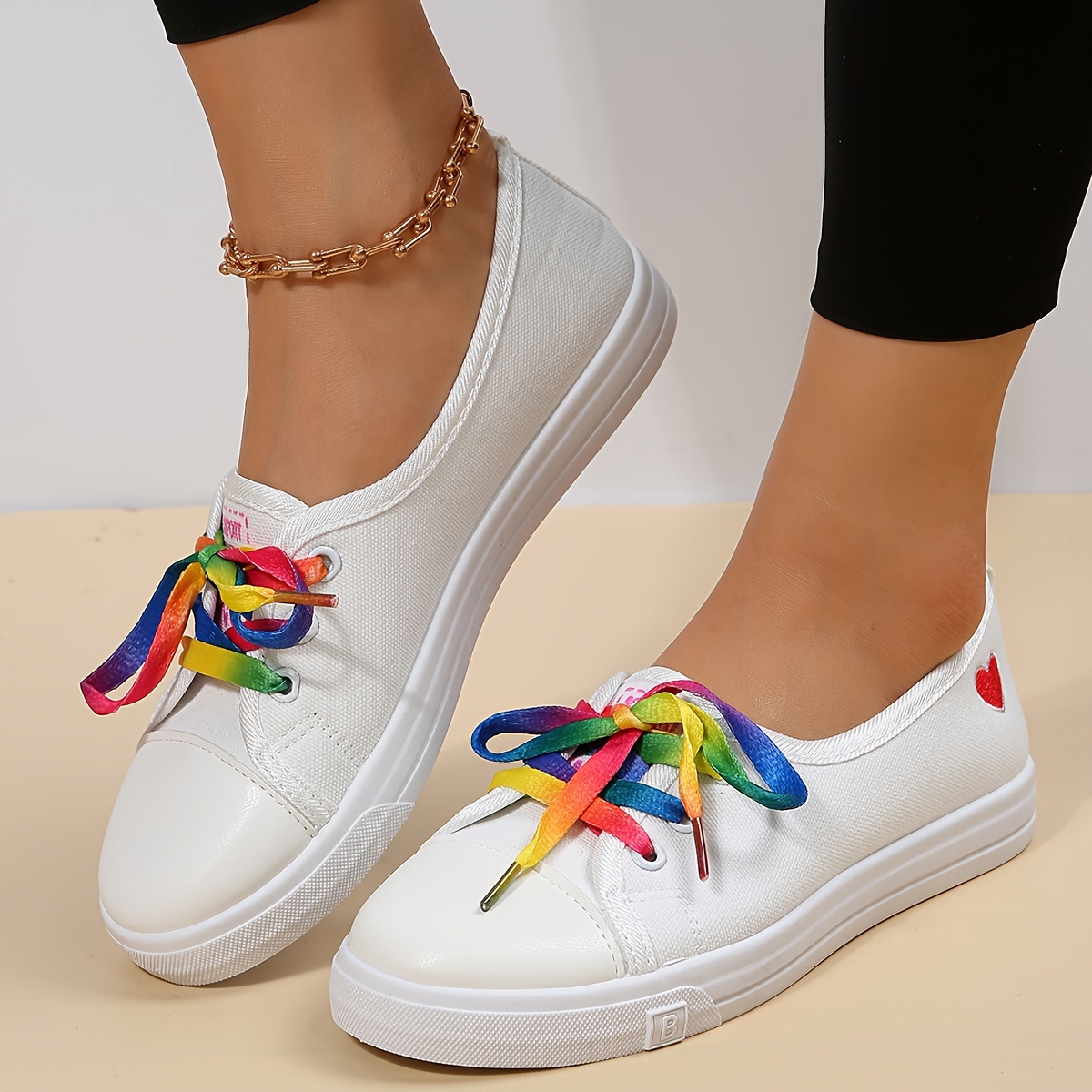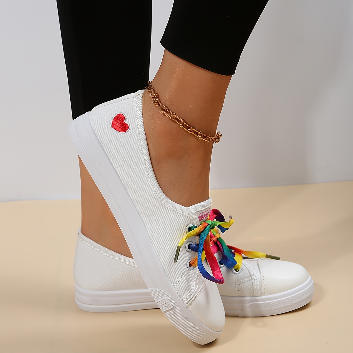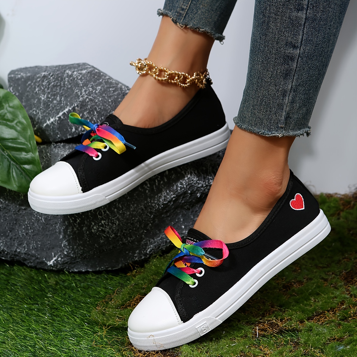 Women's Heart Pattern Canvas Shoes, Casual Lace Up Outdoor Shoes, Lightweight Los Top Sneakers