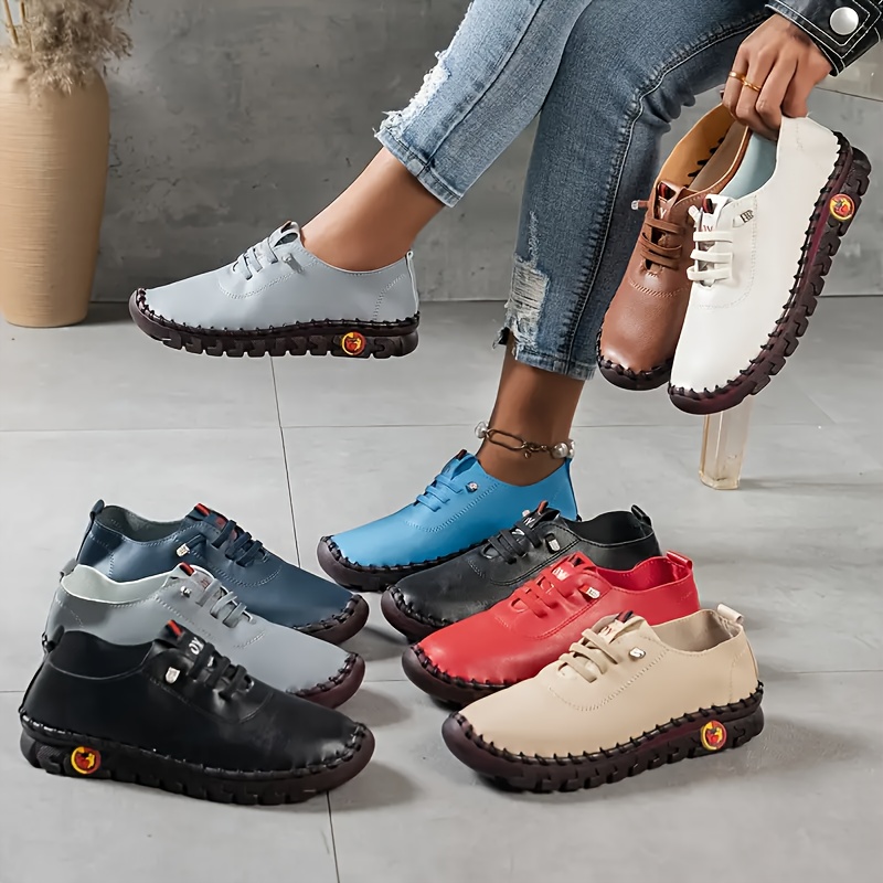 Women's Soft Sole Sneakers, Casual Lace Up Faux Leather Loafers, Lightweight Low Top Walking Shoes