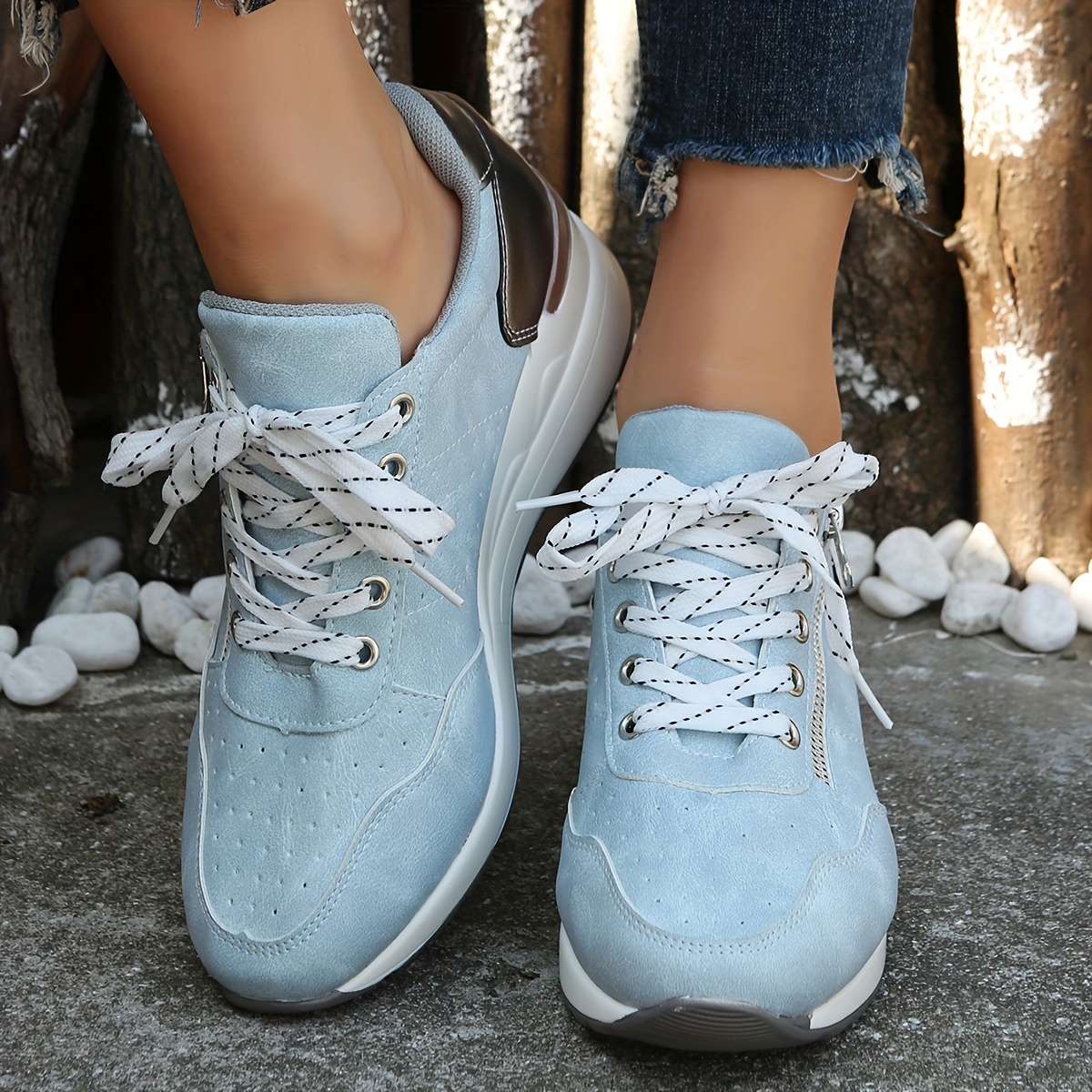 Women's Solid Color Casual Sneakers, Lace Up Breathable Soft Sole Sporty Strainers, Lightweight Low-top Wedge Shoes