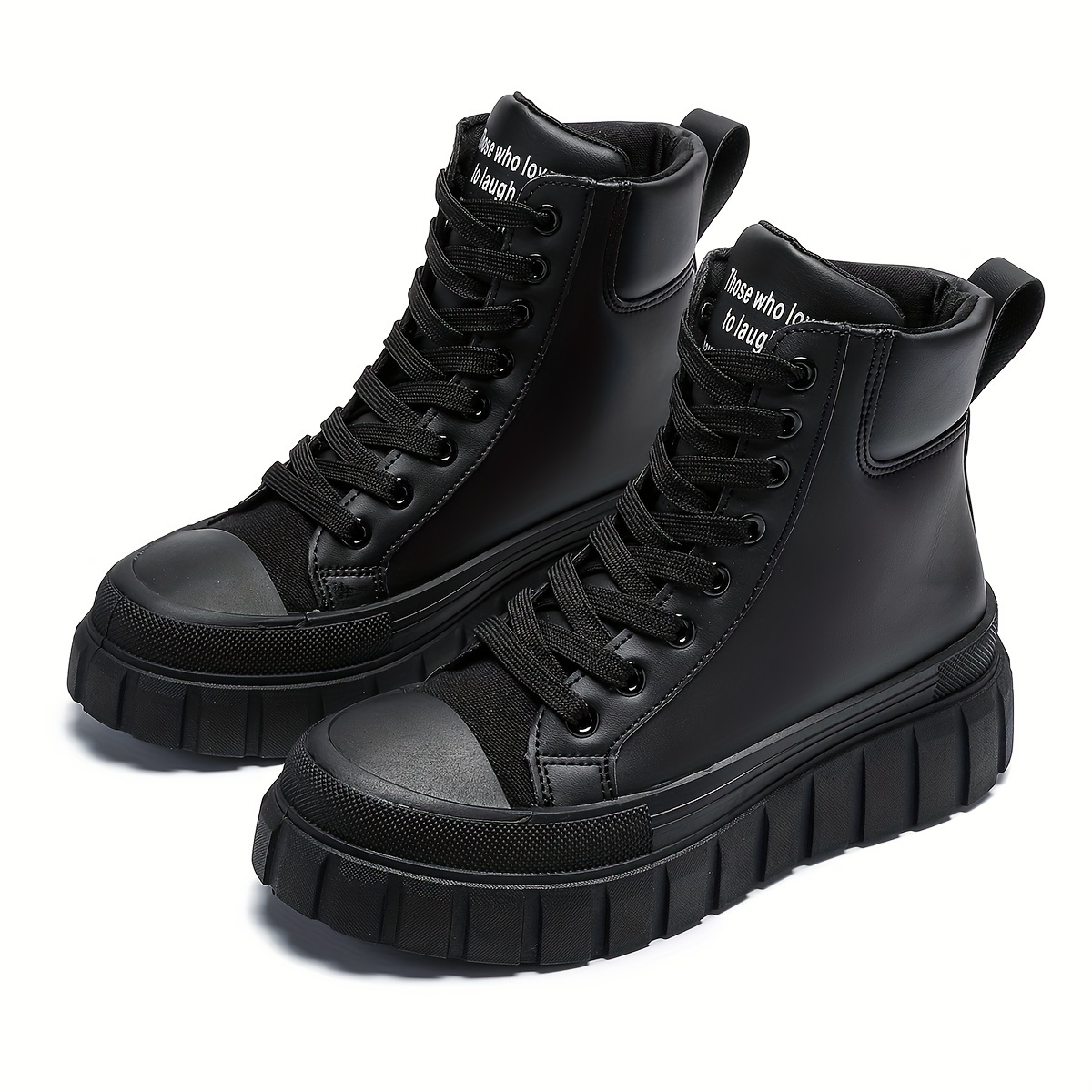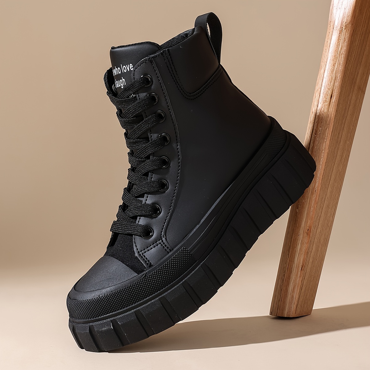 Women's Solid Color Trendy Sneakers, Lace Up Soft Sole Flat Versatile Skate Shoes, High-top Non-slip Walking Shoes
