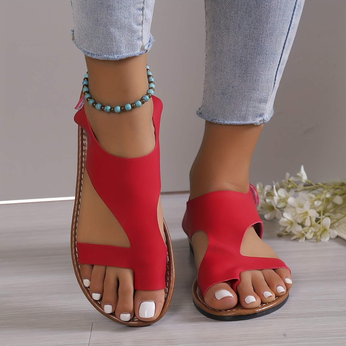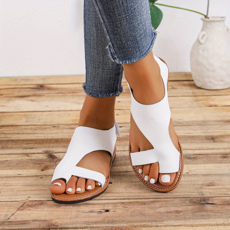 Women's Toe Loop Sandals, Comfortable Open Toe Solid Color Shoes, Women's Fashion Flat Shoes