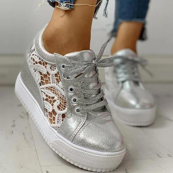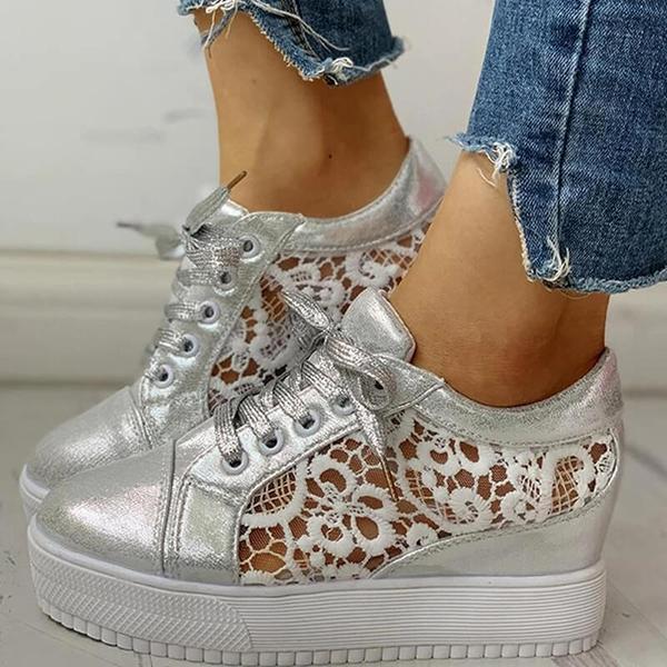 Women Lace Height Increasing Wedge Sneakers