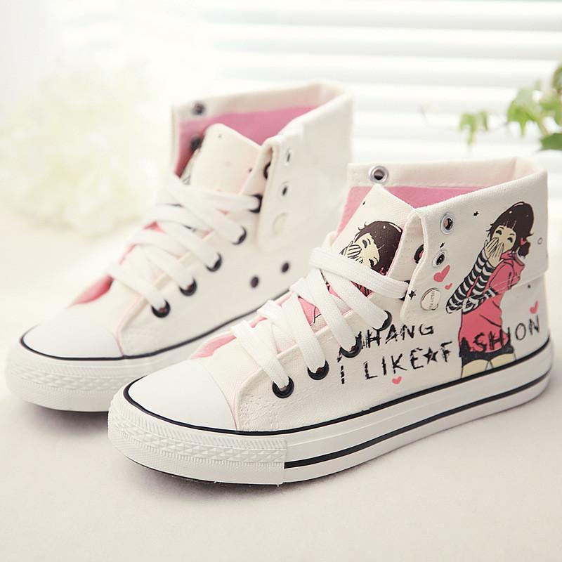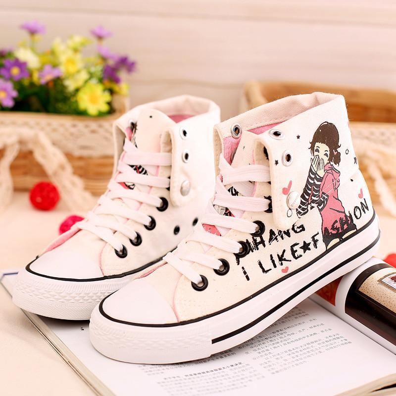 Sweet Hand-Painted Lace Up Canvas Sneakers