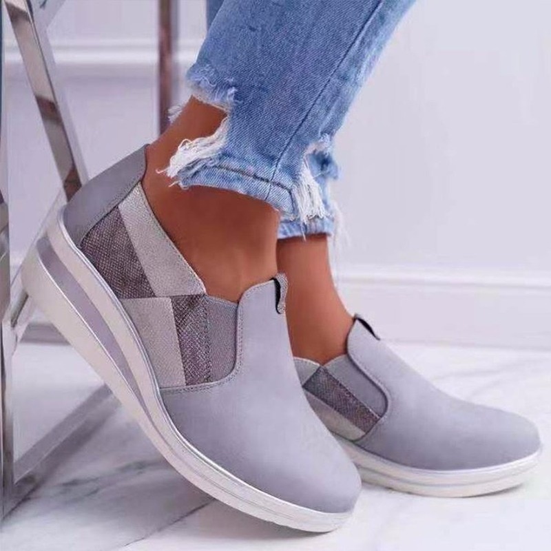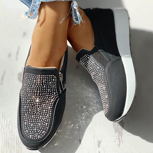 Suede Beads Design Zipper Platform Casual Sneakers