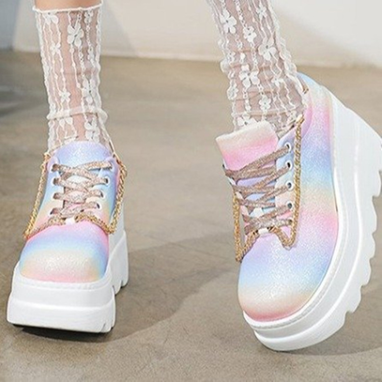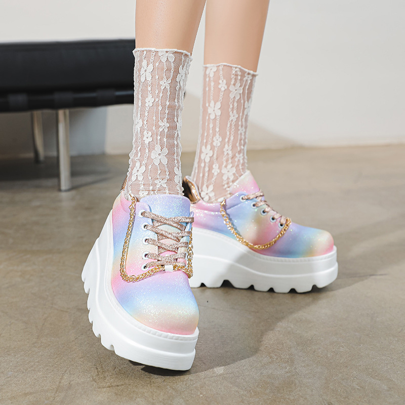 Dazzling color inner height increase sneakers women's metal chain wedge casual women's Sneakers