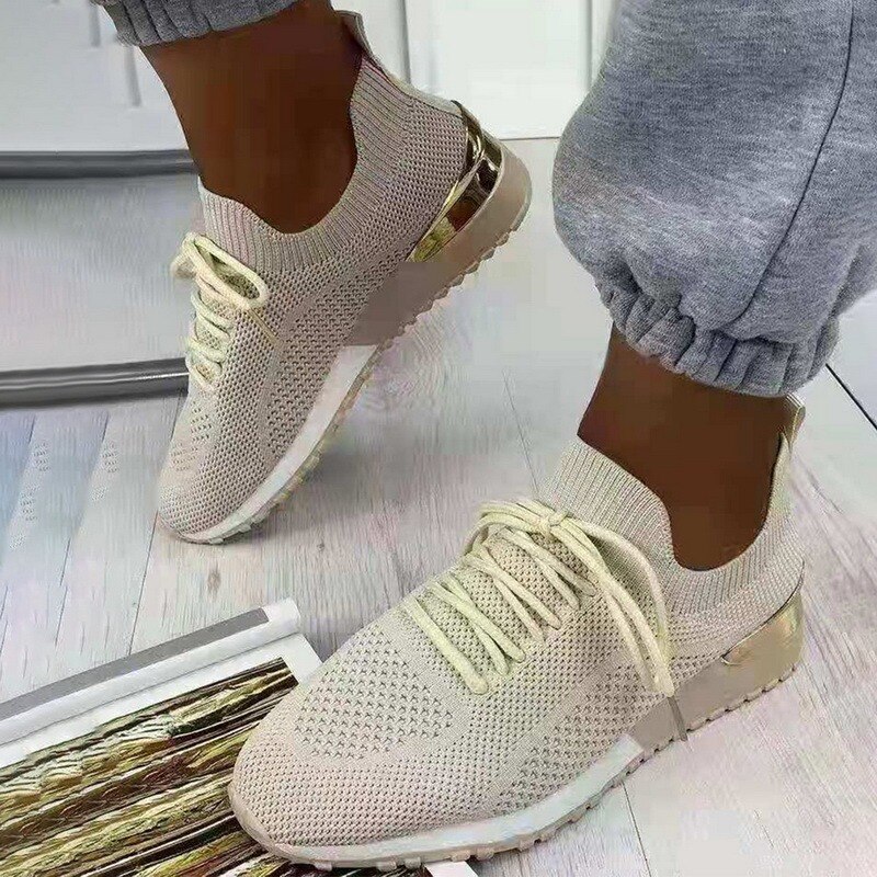 Vulcanize Shoes Sneakers Women Shoes Ladies Lace Up Knit Solid Color Sneakers For Female Sport Mesh Casual Shoes For Women 2024