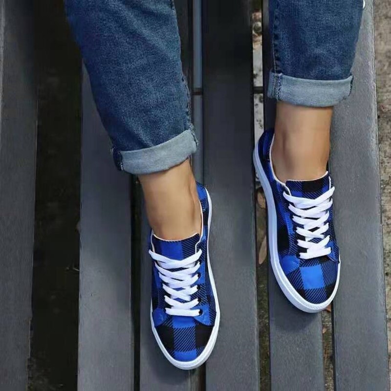 2024 New Canvas Flat Shoes Women Sneakers Casual Grid Leopard Flats Simple Classic Lace-up Spring Shoes Female Plus size