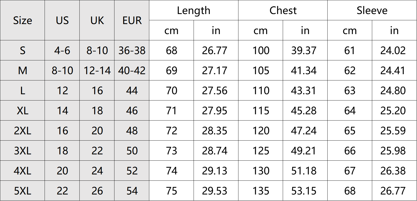 SIZE CHART