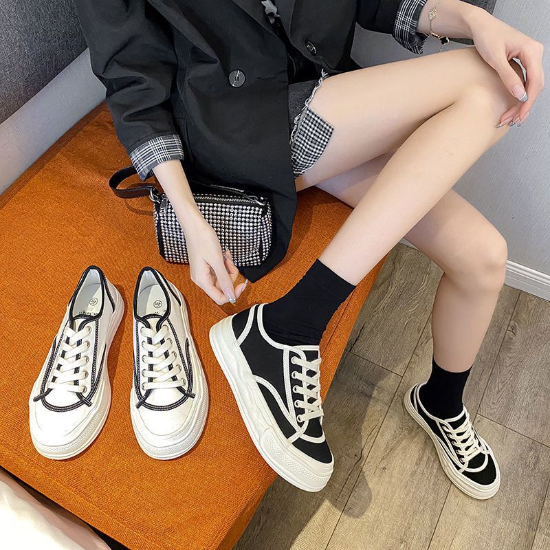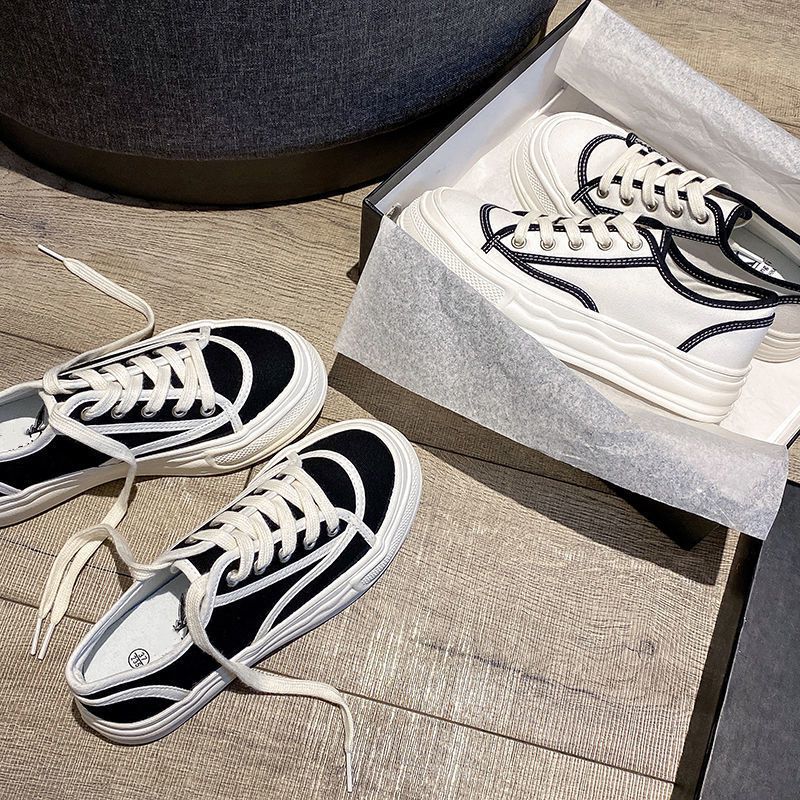 Black And White Stitching Canvas Shoes New Casual All-match Casual Dissolving Sneakers
