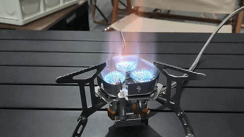 This camping stove has piezoelectric ignition; the valve with built-in thickened seal does not leak. Using the built-in flame control knob, you can adjust the flame to your needs.