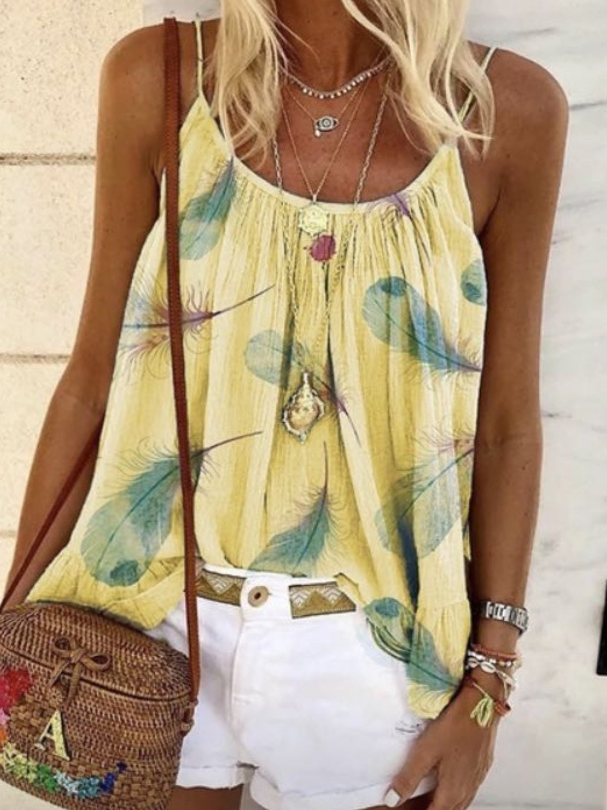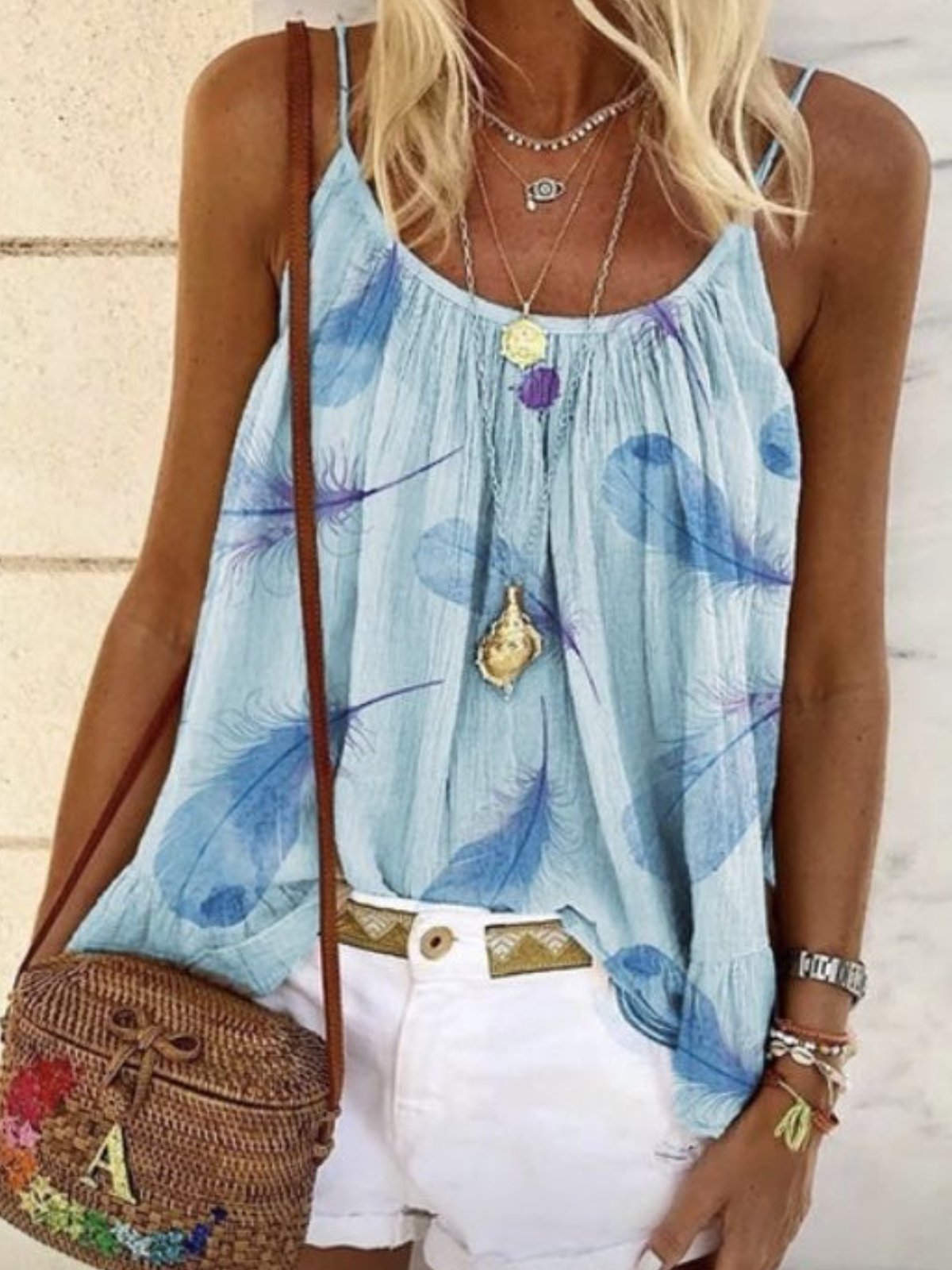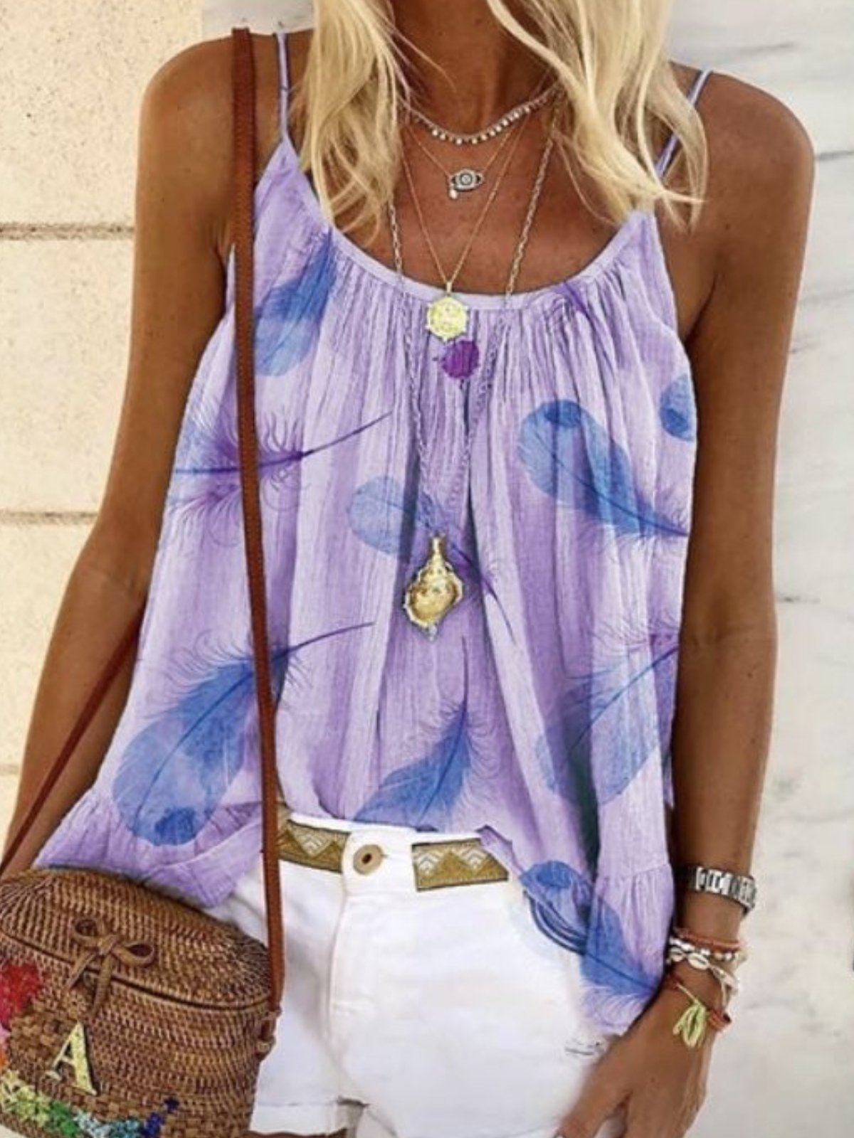Casual Printed Cotton-Blend Sleeveless Shirts & Tops