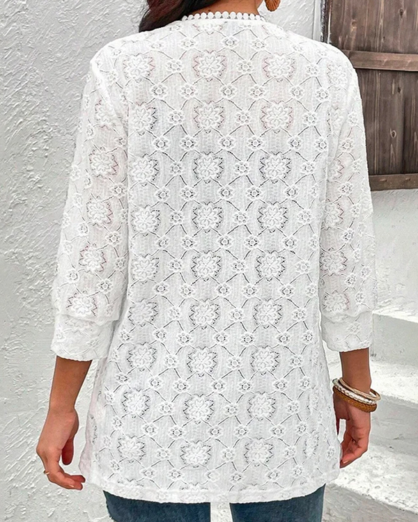 Fashion Hollow Long Sleeve Lace Stitching Cardigan