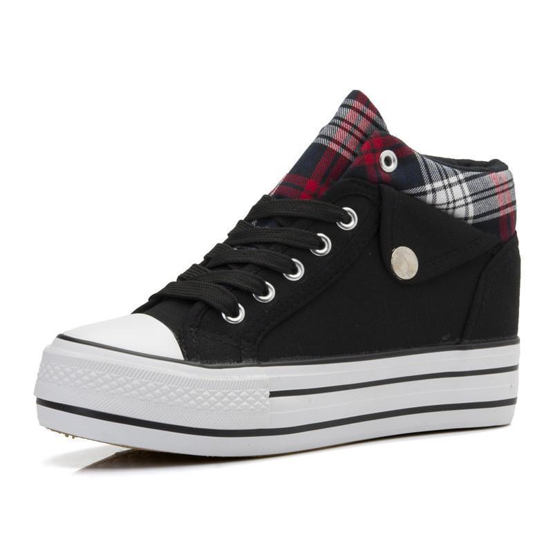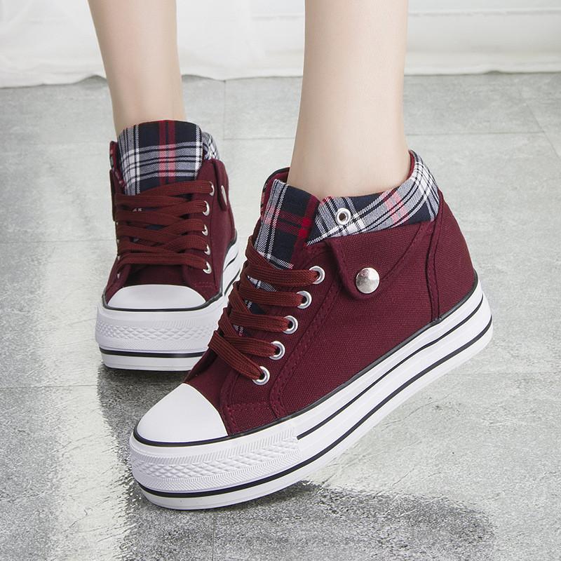 Fashion Increased Canvas Lace Up Plaid Sneakers