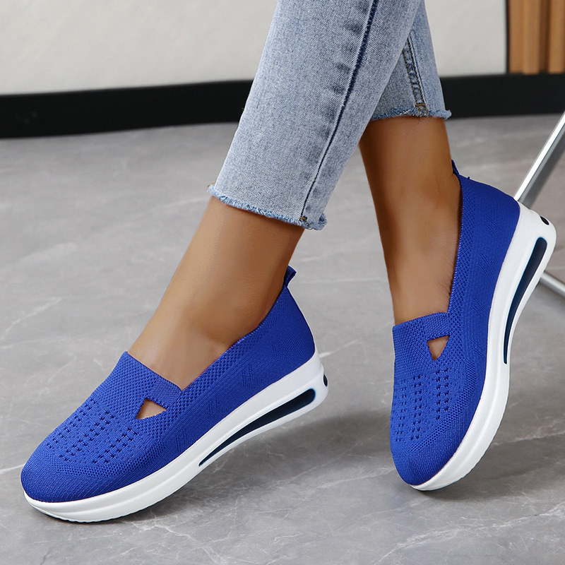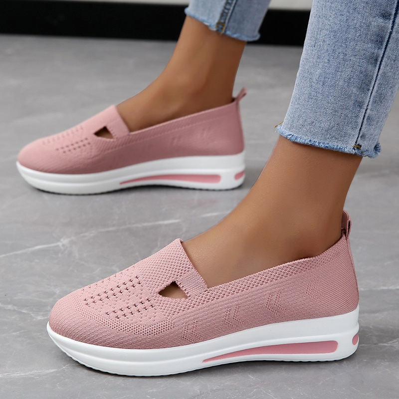 Large Size Flyknit Fabric Breathable Summer Wedge Casual Cutout Sneakers