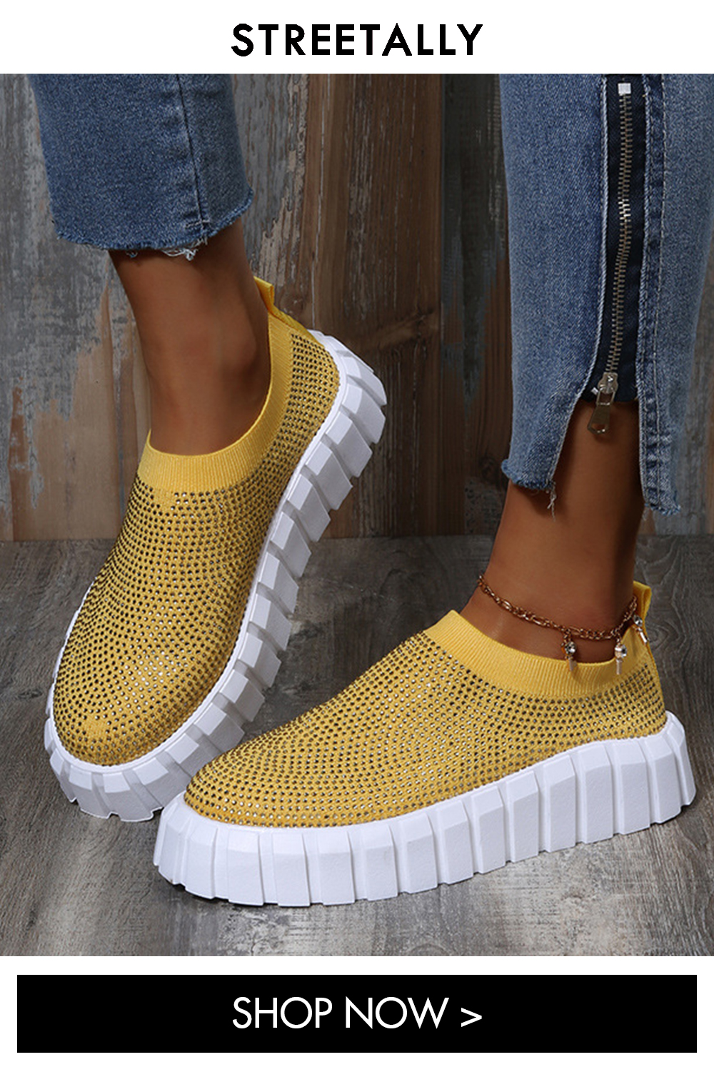 Large Size Thick Bottom Rhinestone Mesh Breathable Casual Sneakers