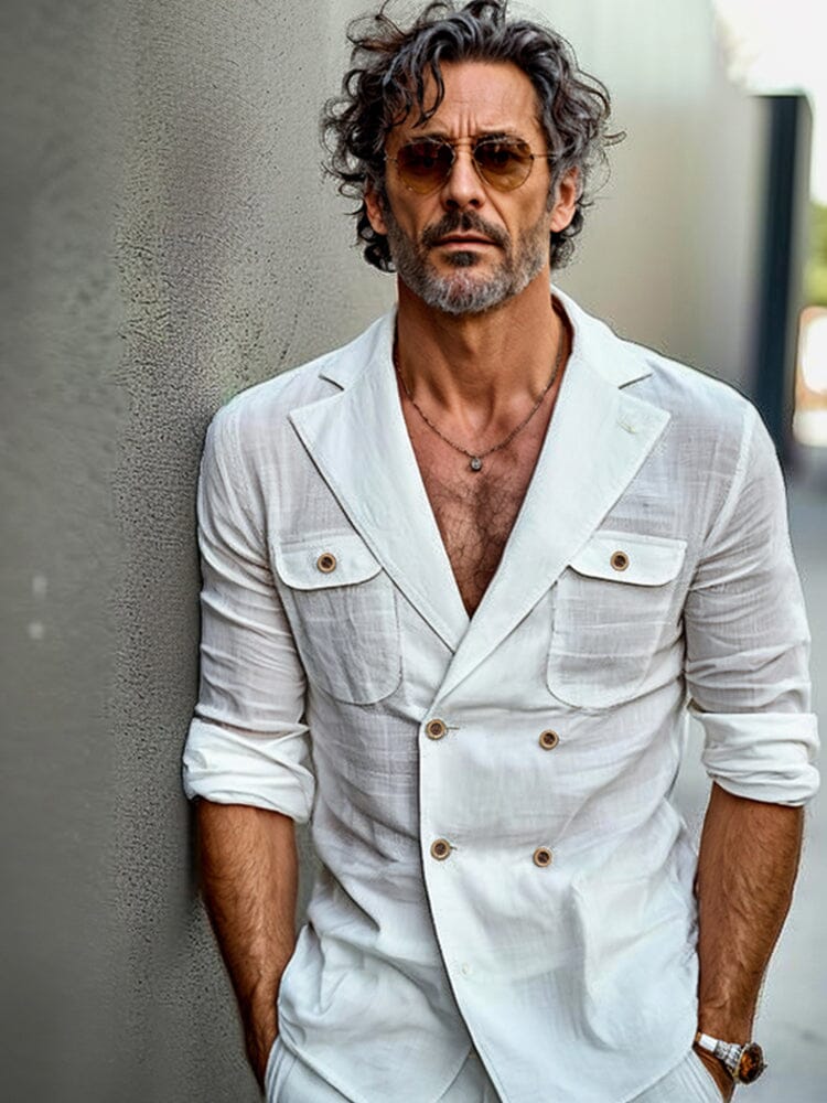 Lightweight Linen Blend Suit Jacket Shorts Set