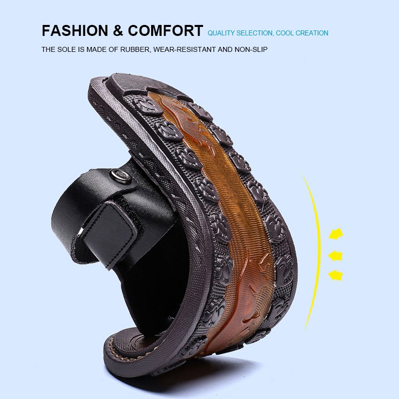A pair of slippers with straps changed this situation. You can put away the belt when going out. At this time it is a pair of cool and lightweight slippers. When you need to drive you can put the belt down. It was a pair of sandals at this time.