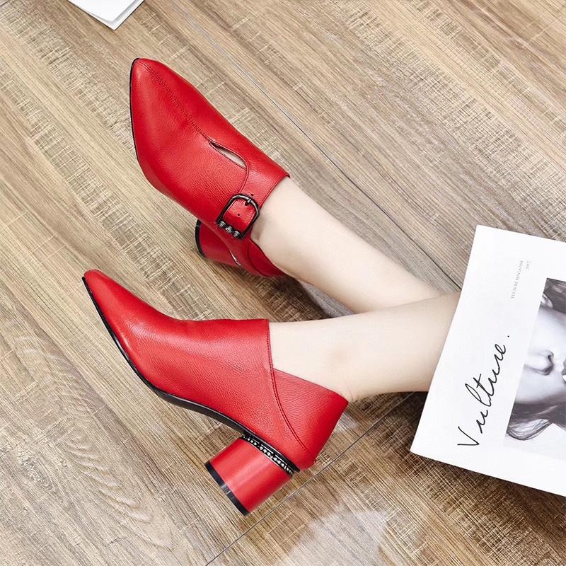 New style soft leather chunky heel single buckle leather shoes