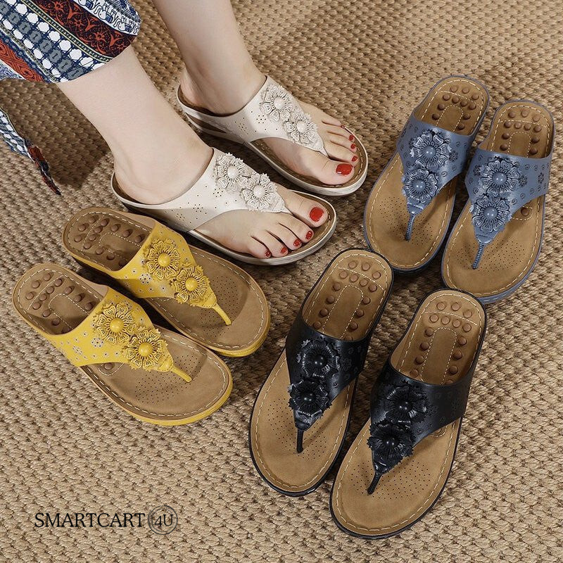 OCW Women Walking Sandals Floral EVA Memory Cushion Summer Wedge Flip-flops