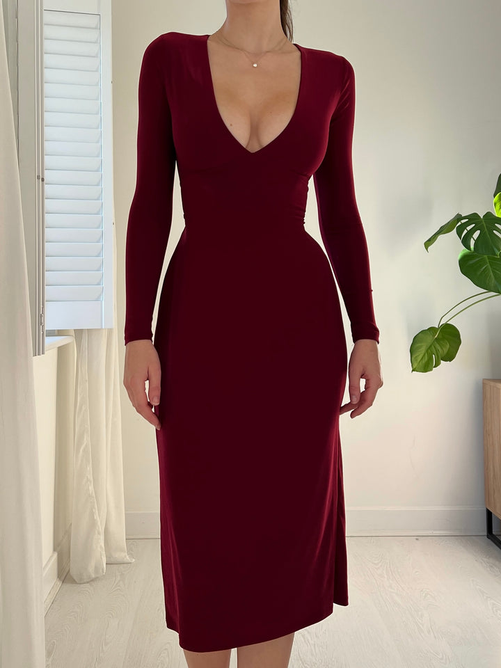 【Soft and Comfort】The deep V neck dress is made of comfortable, soft stretchy 95% Polyester, 5% Elastane. fabric, elastic quality makes long sleeve dress fits for most figures. Suitable for women wear during spring,autumn, winter.