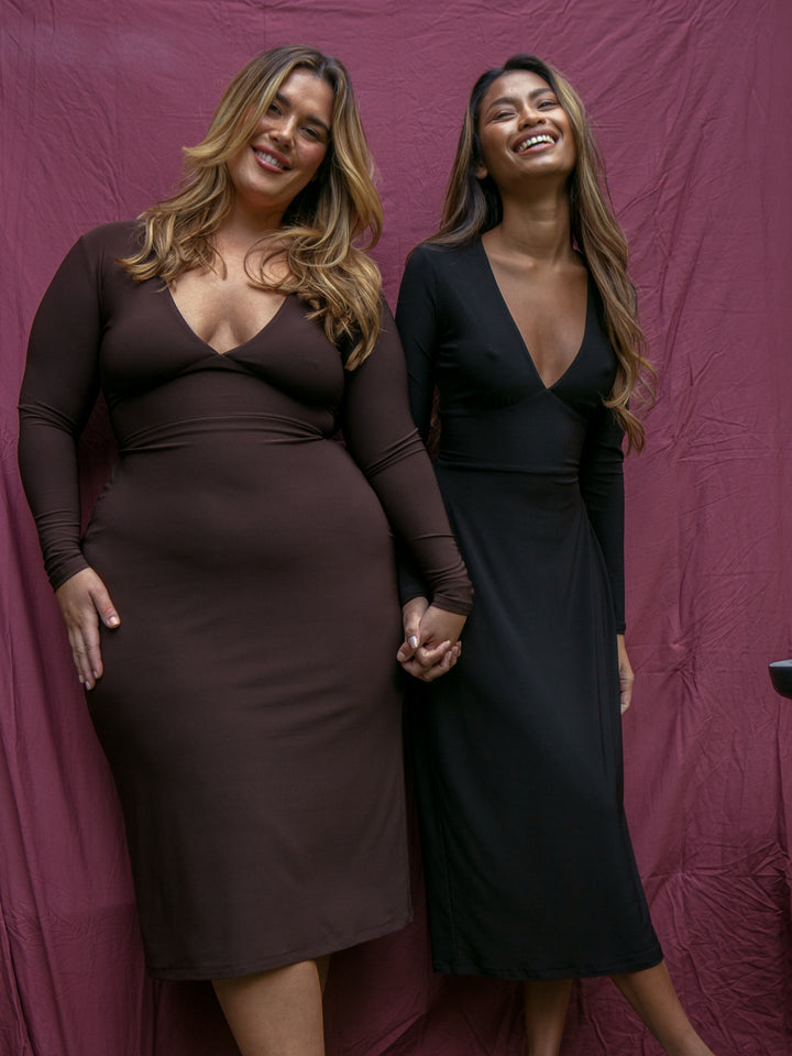 Both dresses featrures a lace up waist that can be tightened to your preference. A dress you'll reach for time and time again for how confident it makes you feel.