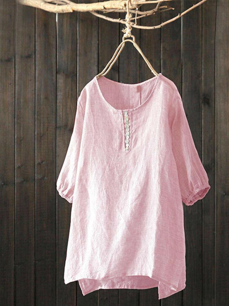Solid color loose cotton and linen blouse