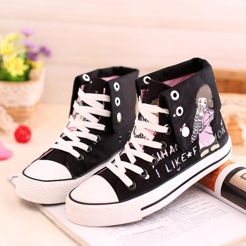 Sweet Hand-Painted Lace Up Canvas Sneakers