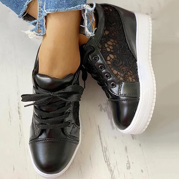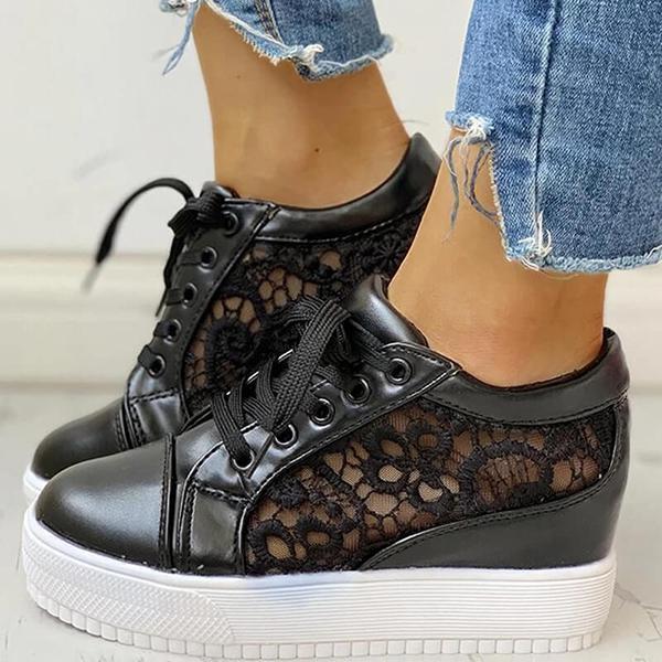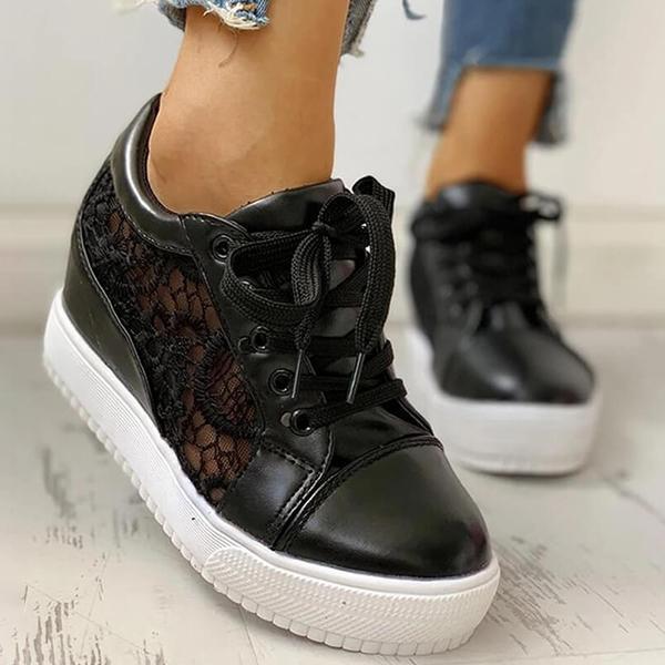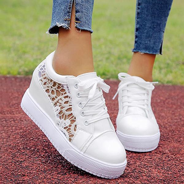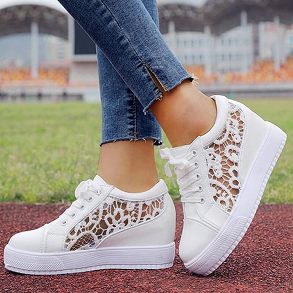 Women Lace Height Increasing Wedge Sneakers