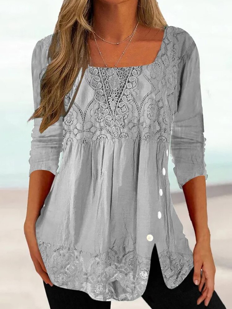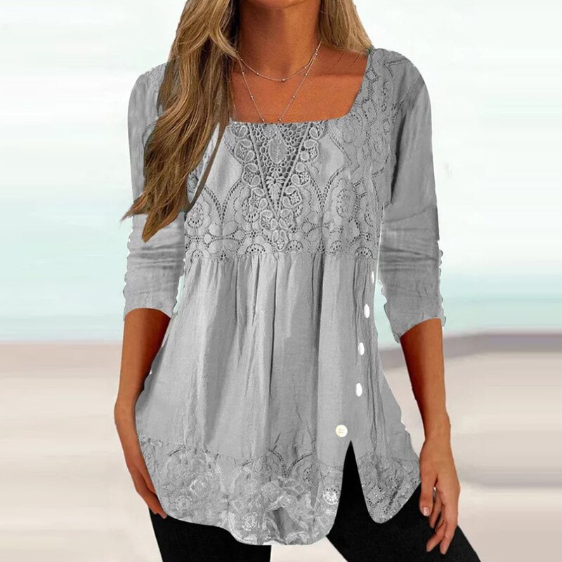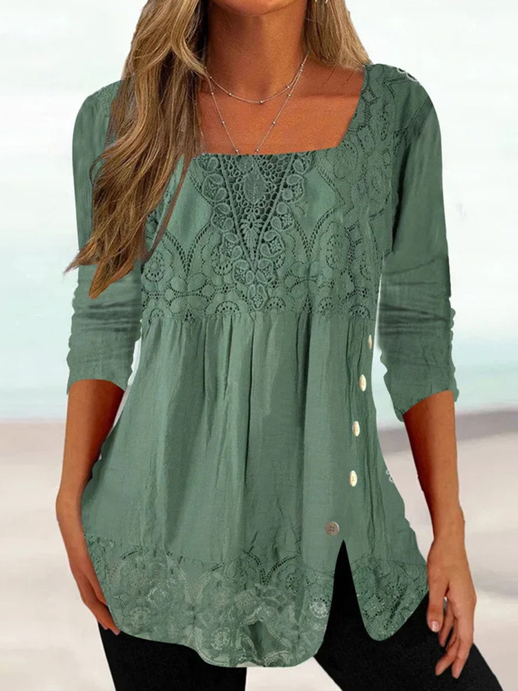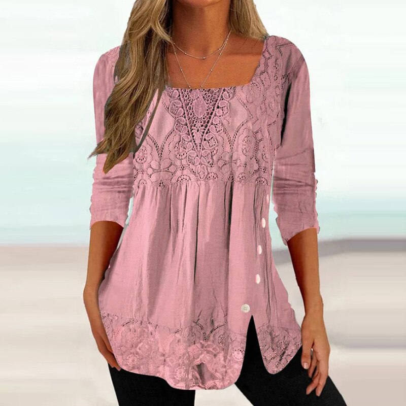 Women Spring Summer Lace Patchwork Top Blouses Solid Loungewear Long Sleeve Square Collar Ladies Sweatshirts Streetwear Blusas