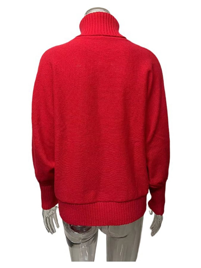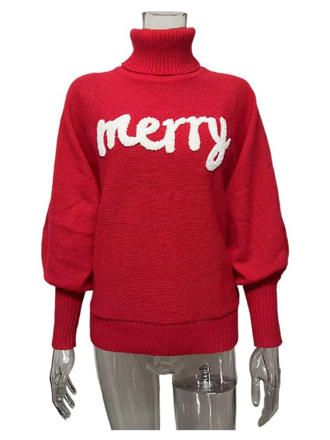 Women's Batwing Sleeve Letter Jacquard Turtleneck Sweater
