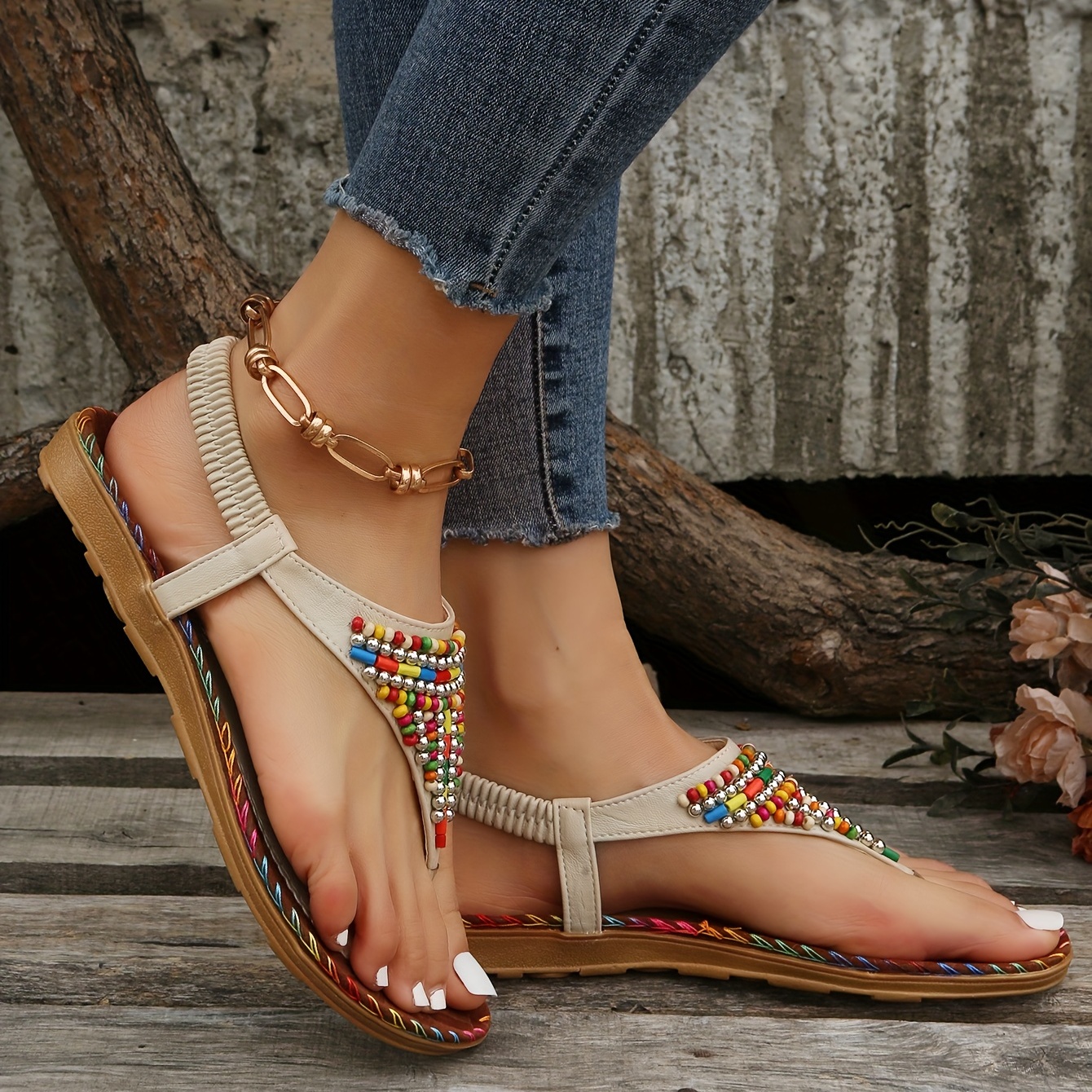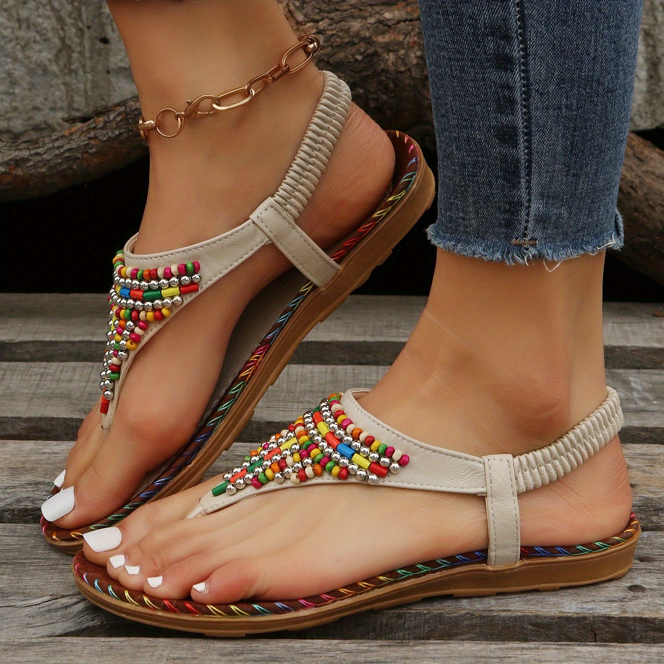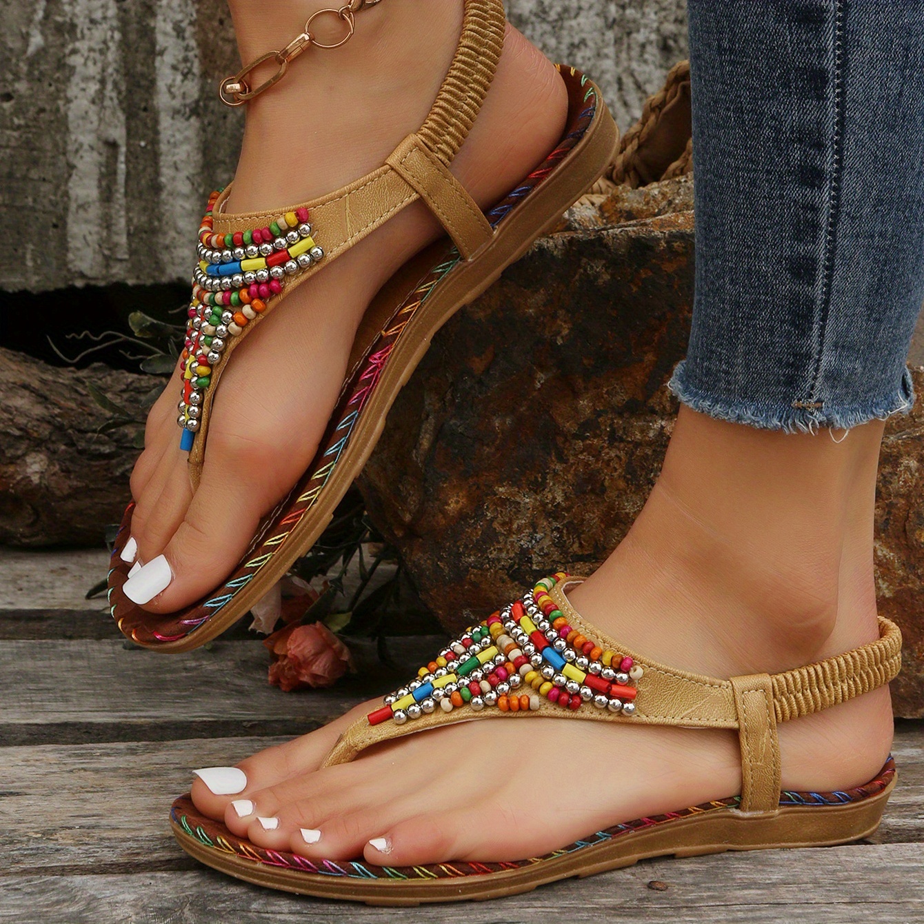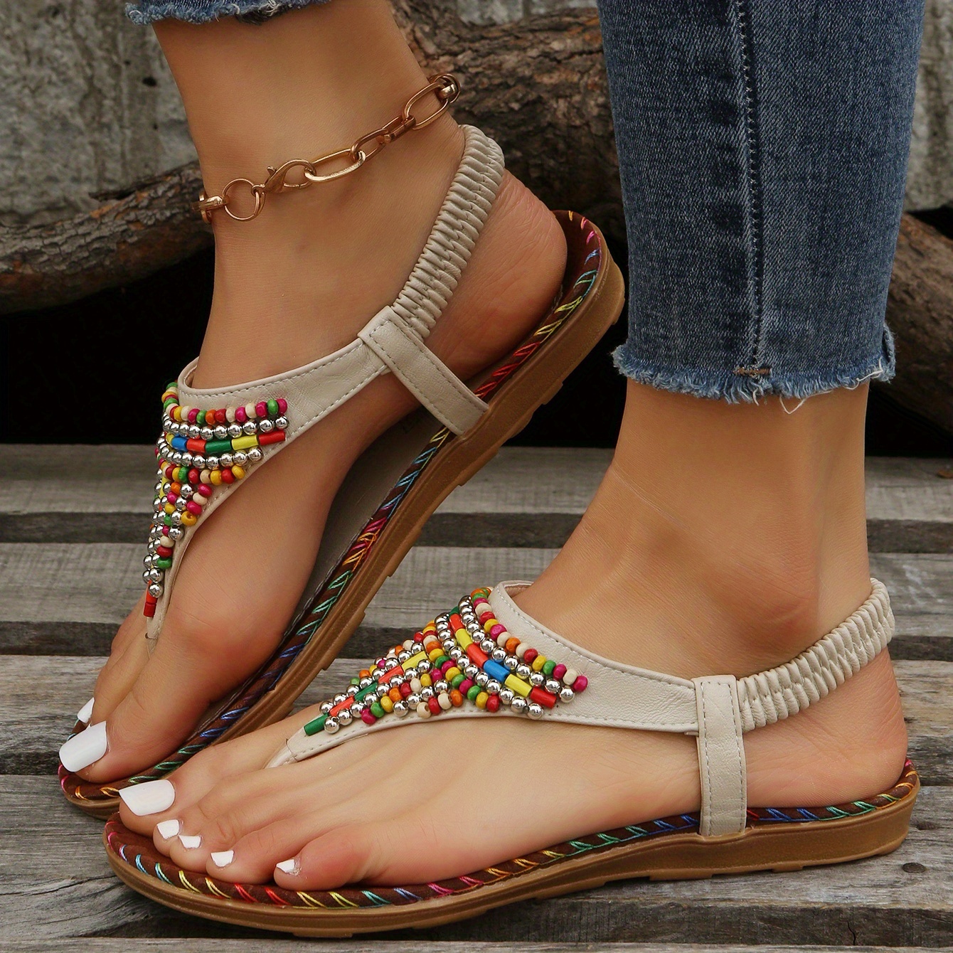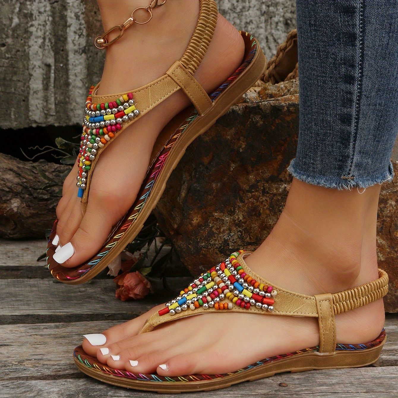 Boho Chic: Colorful beads and bohemian style make these sandals a perfect addition to any boho-inspired outfit.