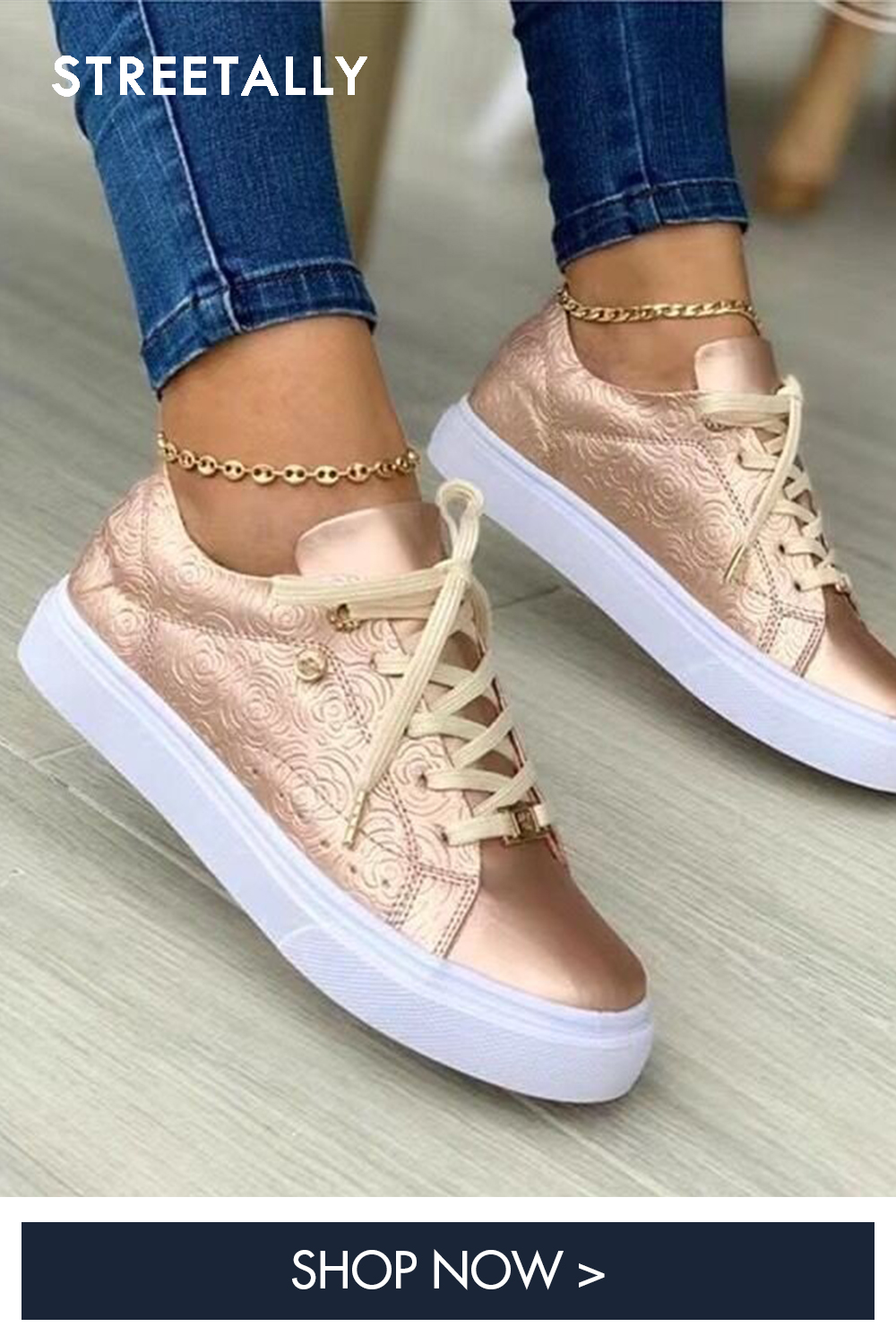 Casual Print Ladies Casual Shoes Front Lace Comfortable Breathable Upper PU Flat Sneakers