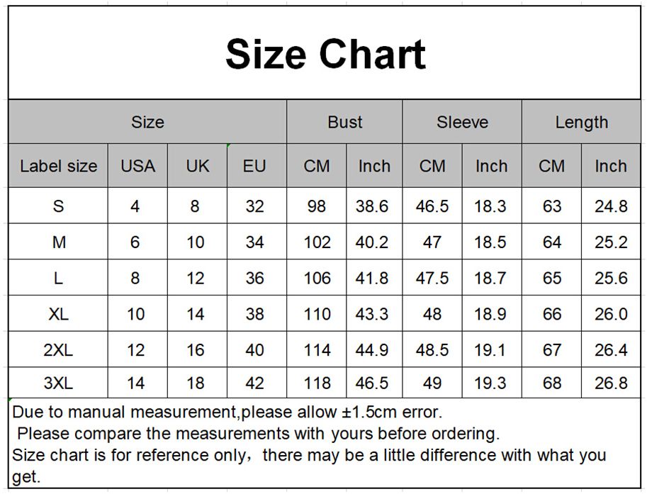 *Due to different production batches, an error of 1-2cm is acceptable(1 cm=0.391 in,1 in=2.54cm).