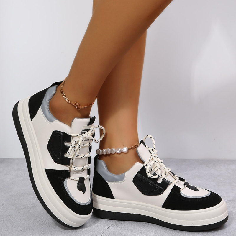 Color Blocking Lace Up Thick Sole Inside Heightening Bread Shoes For Daily Leisure Sneakers