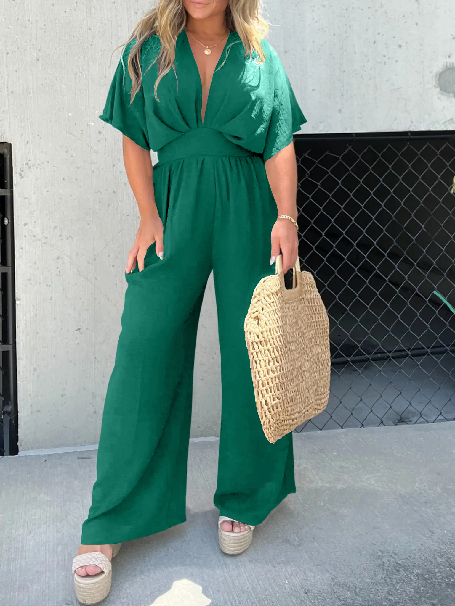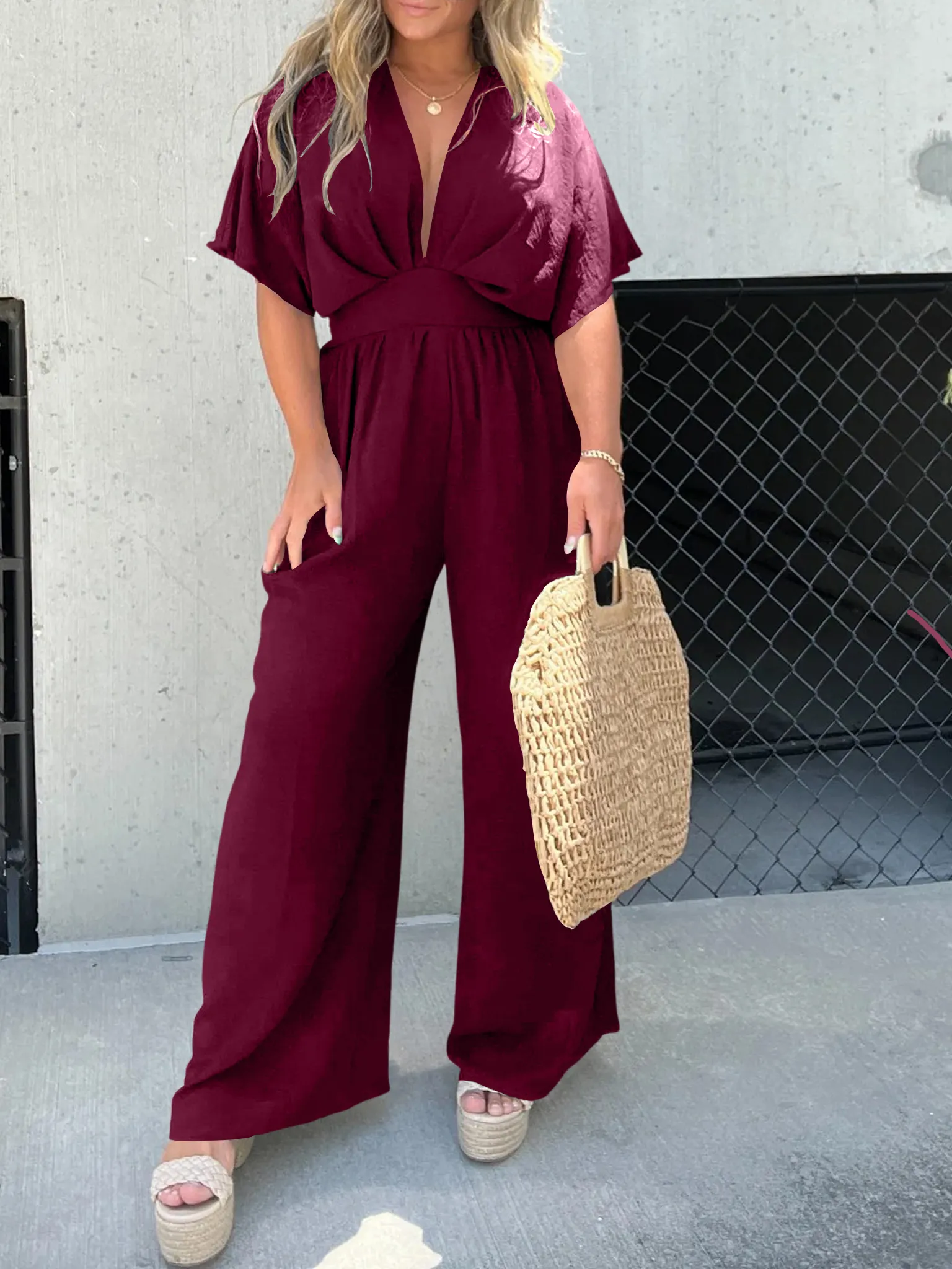 DEEP V-NECK WIDE LEG JUMPSUIT